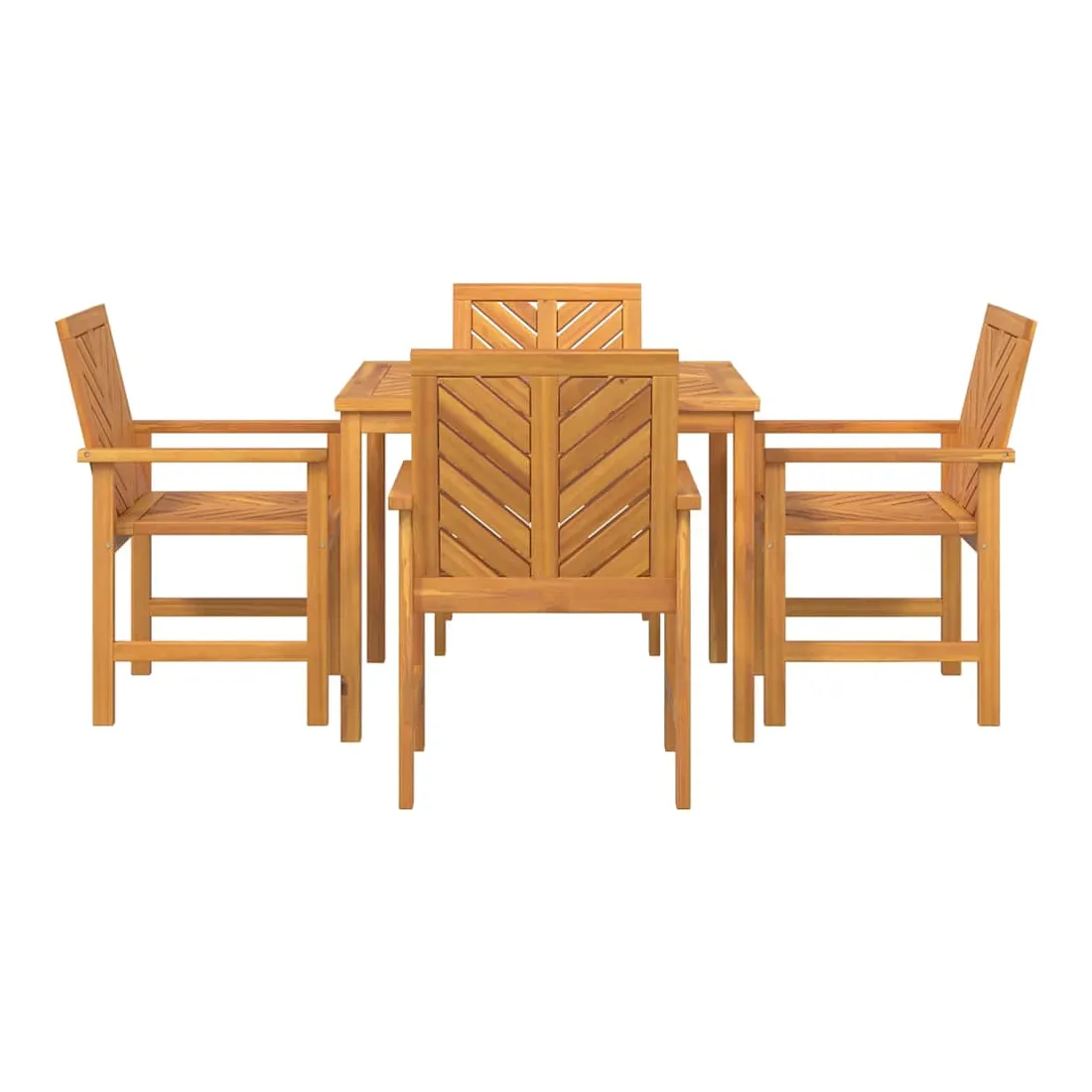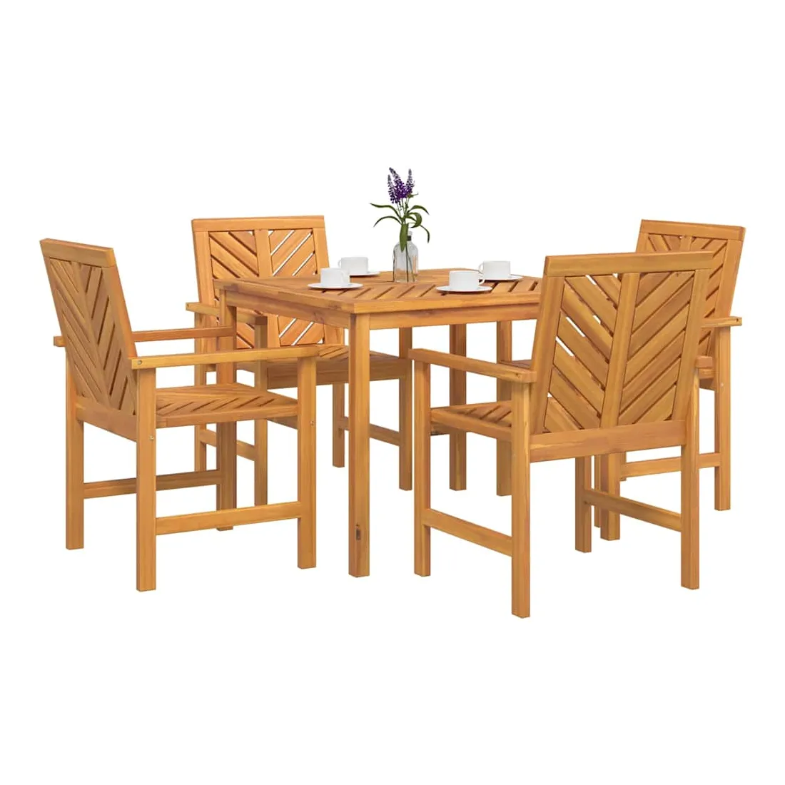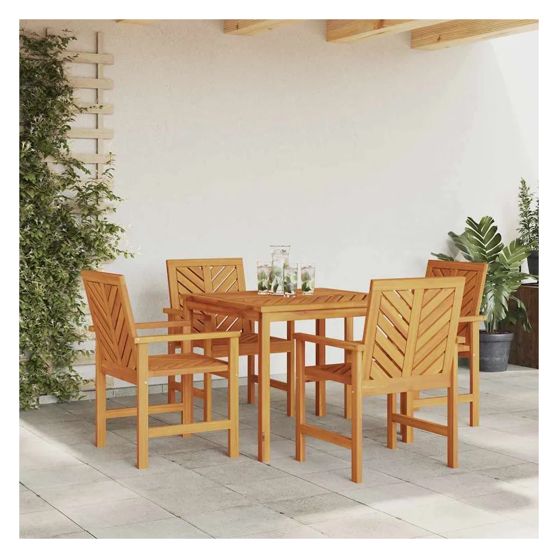 Ce set de repas de jardin moderne est un super choix pour manger dehors. Avec ses lignes simples et son style épuré, il crée une ambiance chic et classe dans votre jardin ou sur votre terrasse. Parfait pour rassembler la famille et les amis, il embellit tous les espaces extérieurs. Matériaux : Fabriqué en bois d'acacia massif, ce set a un look chaleureux et élégant grâce à son beau grain naturel. Ce bois est choisi pour sa solidité et son allure, s'intégrant parfaitement dans n'importe quel jardin. Composants inclus : Ce set est composé d'une table robuste et de chaises assorties, parfaites pour manger dehors. Chaque chaise a des pieds en acacia massif, avec accoudoirs et sièges, tous unis par une même couleur et matériau pour un look harmonieux. Caractéristiques : La forme rectangulaire classique s'adapte à toutes sortes d'aménagements extérieurs, offrant un grand espace pour partager des repas. La finition huilée protège contre l'humidité pour une longue durée de vie et peu d'entretien. Utilisations recommandées : Destiné uniquement à l'extérieur, ce set est idéal pour les jardins, terrasses et patios. Organisez-y des repas ou des brunchs décontractés grâce à sa capacité généreuse. Entretien et maintenance : Pour le garder en bon état, essuyez régulièrement avec un chiffon sec. Évitez de l'exposer aux intempéries quand vous ne l’utilisez pas. Une housse de protection par mauvais temps peut prolonger sa durée de vie.