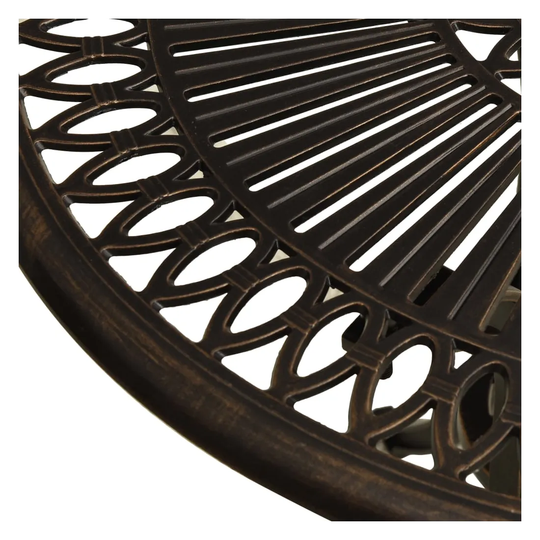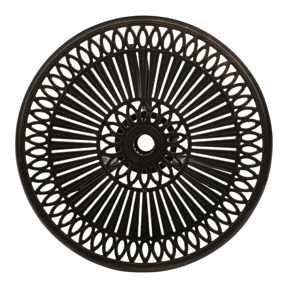 Profitez d’un agréable thé ou d’une tasse de café en plein air sur cette table de jardin avec votre famille et vos amis ! Cette table à thé est fabriquée en aluminium coulé ce qui la rend stable, solide et idéale pour une utilisation quotidienne à l'extérieur. Le dessus de table présente de beaux motifs et permet de placer des boissons, de la nourriture et d’autres essentiels. Les trois pieds séparés vous apportent une expérience utilisateur fiable pour sa stabilité. De plus, cette table de patio a un trou de parasol qui peut parfaitement accueillir votre parasol pour vous protéger du soleil ou de la pluie.