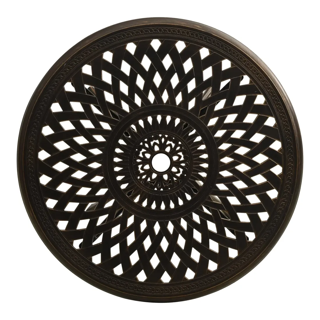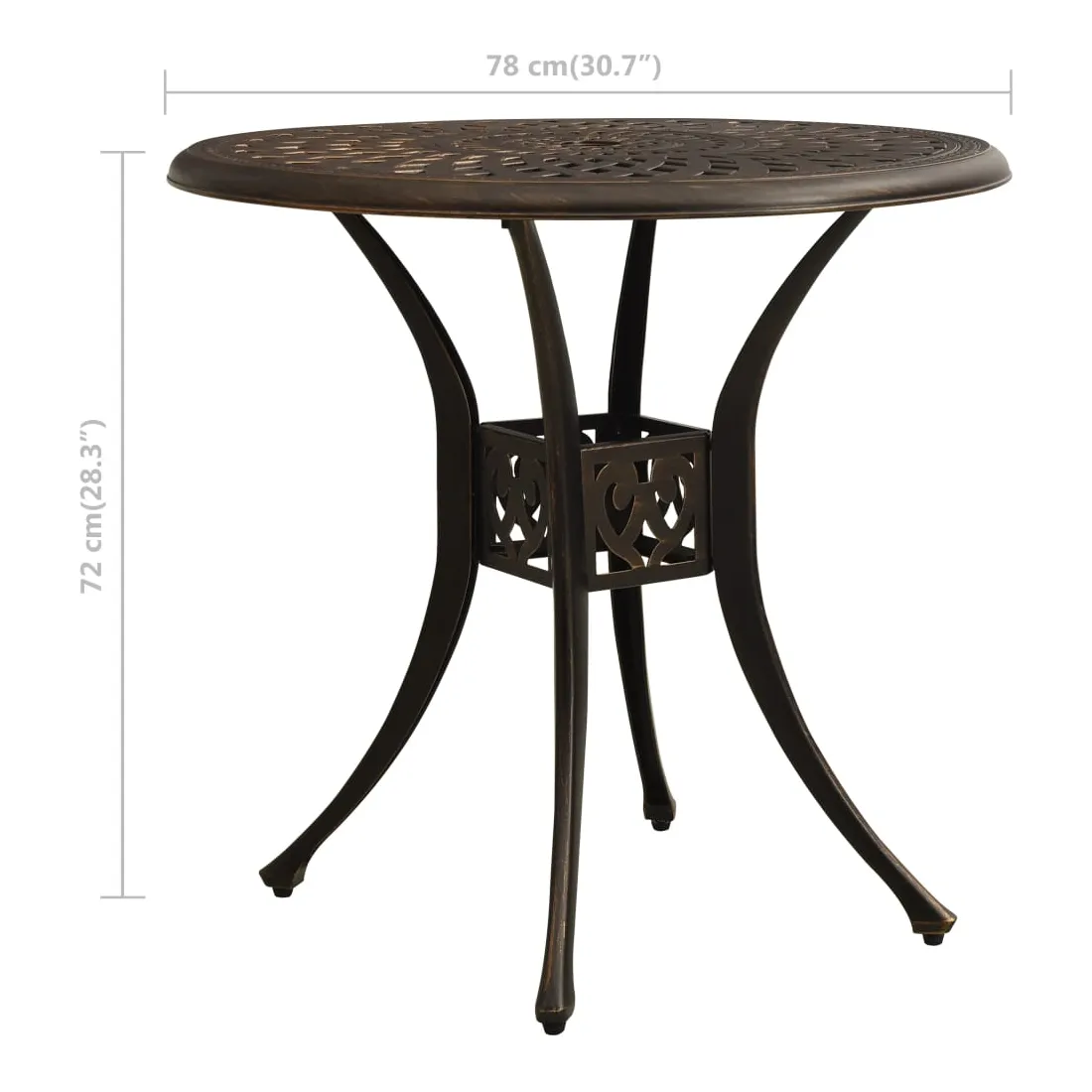 Profitez d’un agréable thé ou d’une tasse de café en plein air sur cette table de jardin avec votre famille et vos amis ! Cette table à thé est fabriquée en aluminium coulé ce qui la rend stable, solide et idéale pour une utilisation quotidienne à l'extérieur. Le dessus de table dispose d’un design creux unique et convient pour placer des boissons, de la nourriture et d’autres essentiels. Les quatre pieds séparés vous apportent une expérience utilisateur fiable pour sa stabilité. De plus, cette table de patio a un trou de parasol qui peut parfaitement accueillir votre parasol pour vous protéger du soleil ou de la pluie.