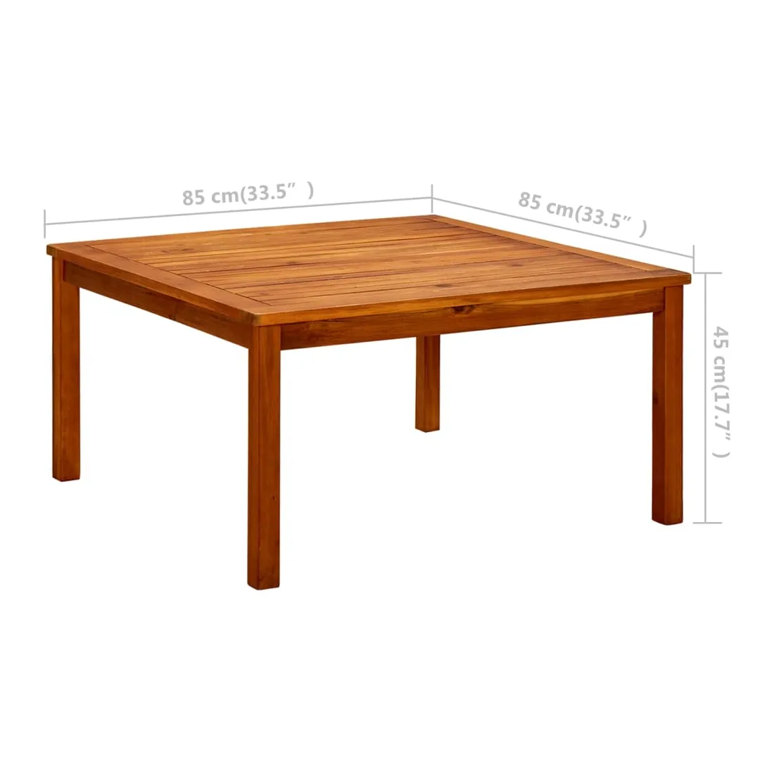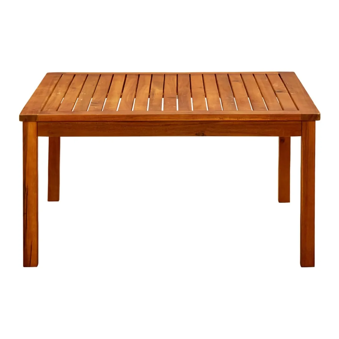 Profitez d'un moment de café confortable avec votre famille ou vos amis dans votre espace extérieur avec cette table basse en bois élégante ! Cette table est fabriquée en bois d'acacia massif avec une finition à l'huile naturelle, qui résiste aux intempéries et est durable. Chaque étape du processus est réalisée avec le plus grand soin, qu'il s'agisse de polissage ou de laquage. Le solide dessus de table à lattes vous offre de l'espace pour y mettre des en-cas, des paniers de fruits, des articles de décoration, ainsi que d'autres articles essentiels. Remarque importante : les couleurs et les grains varient d'une pièce à l'autre, rendant chaque pièce unique. La livraison est aléatoire, ce qui garantit l'exclusivité et l'individualité de votre produit. Remarque : afin de prolonger la durée de vie des meubles d'extérieur, nous vous recommandons de les protéger avec une housse imperméable.