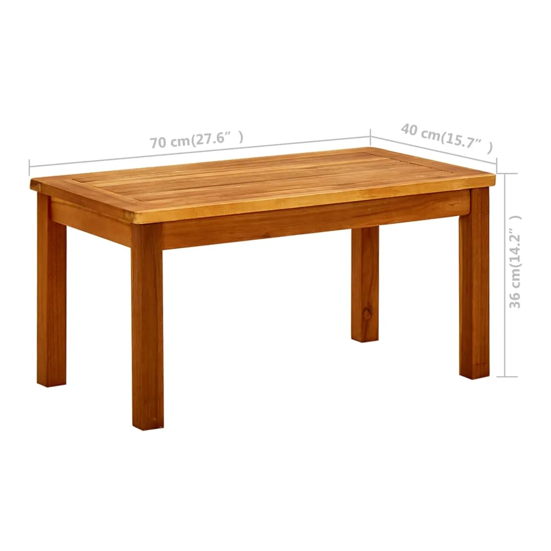 Profitez d'un moment de café confortable avec votre famille ou vos amis dans votre espace extérieur avec cette table basse en bois élégante ! Matériau durable : le bois d'acacia massif est un matériau naturel magnifique. Le bois d'acacia un bois dur tropical, qui est dense, robuste et durable.Dessus de table robuste : le dessus de table robuste vous offre de l'espace pour placer des collations, des paniers de fruits, des objets décoratifs ainsi que d'autres éléments essentiels.Bonne ventilation : la conception à lattes assure la circulation de l'air et empêche la chaleur étouffante. Bon à savoir :Pour que vos meubles d'extérieur restent beaux, nous vous recommandons de les protéger avec une housse imperméable.Chaque article est unique, avec des variations de couleurs et de grains. La livraison est aléatoire, ce qui garantit l'exclusivité et l'individualité de votre produit.