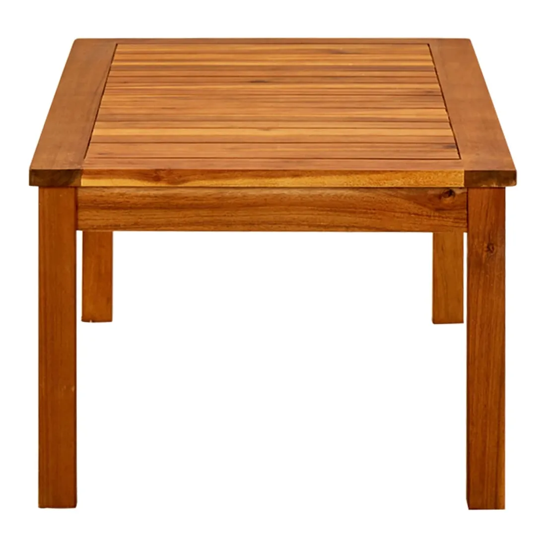Profitez d'un moment de café confortable avec votre famille ou vos amis dans votre espace extérieur avec cette table basse en bois élégante ! Cette table est fabriquée en bois d'acacia massif avec une finition à l'huile naturelle, qui résiste aux intempéries et est durable. Chaque étape du processus est réalisée avec le plus grand soin, qu'il s'agisse de polissage ou de laquage. Le solide dessus de table à lattes vous offre de l'espace pour y mettre des en-cas, des paniers de fruits, des articles de décoration, ainsi que d'autres articles essentiels. Remarque importante : les couleurs et les grains varient d'une pièce à l'autre, rendant chaque pièce unique. La livraison est aléatoire, ce qui garantit l'exclusivité et l'individualité de votre produit. Remarque : afin de prolonger la durée de vie des meubles d'extérieur, nous vous recommandons de les protéger avec une housse imperméable.