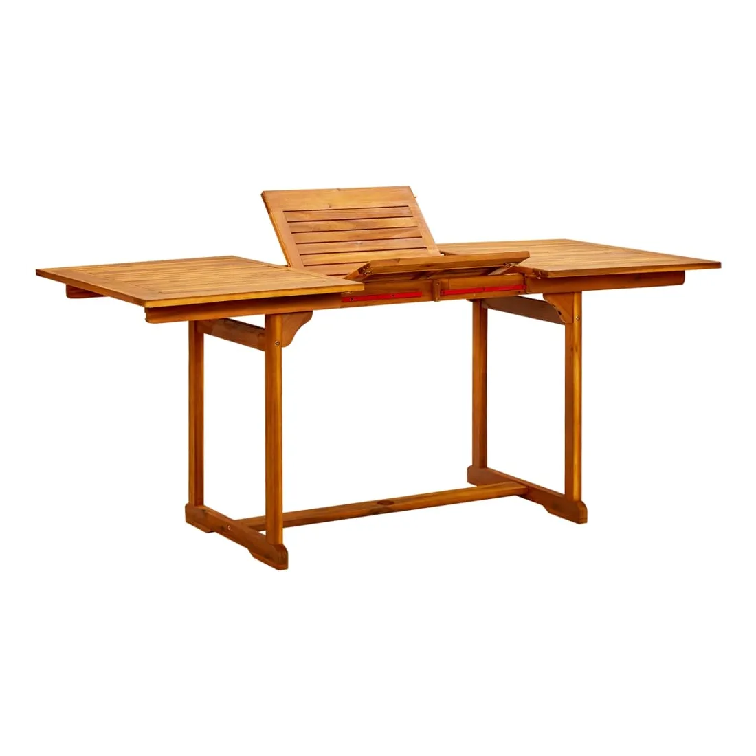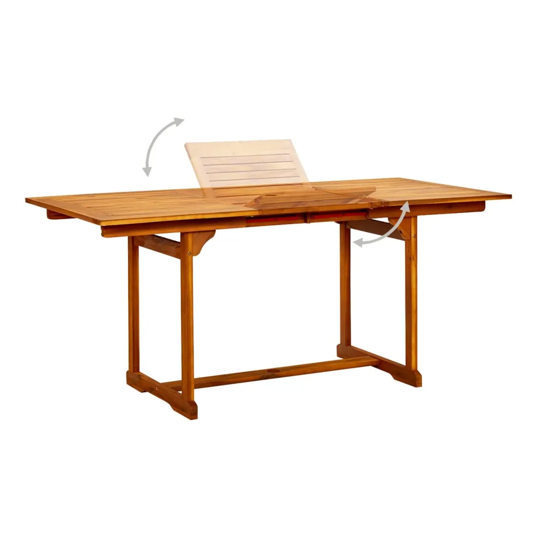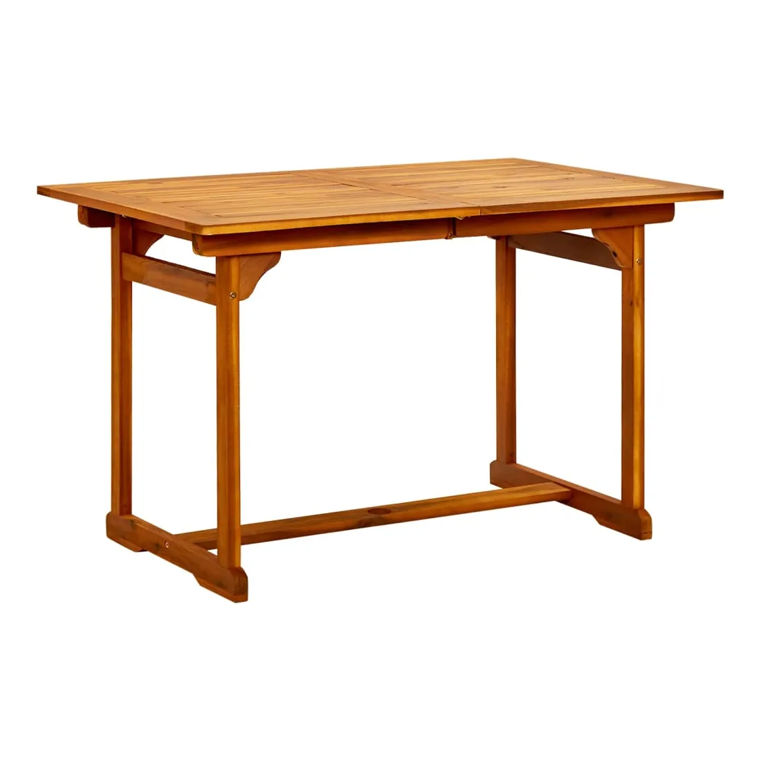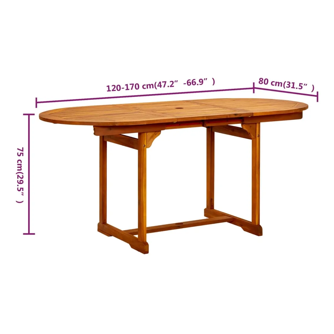 Cette table à dîner en bois ajoute une touche de charme rustique à votre jardin, terrasse ou patio ! Matériau durable : le bois d'acacia massif est un matériau naturel magnifique. Le bois d'acacia un bois dur tropical, qui est dense, robuste et durable.Dessus de table extensible : grâce à sa conception spéciale, cette table de jardin peut être étendue lorsque de l'espace supplémentaire est nécessaire.Facile à nettoyer : la surface à finition à l'huile rend cette table facile à nettoyer avec un chiffon humide. Bon à savoir :Pour que vos meubles d'extérieur restent beaux, nous vous recommandons de les protéger avec une housse imperméable.