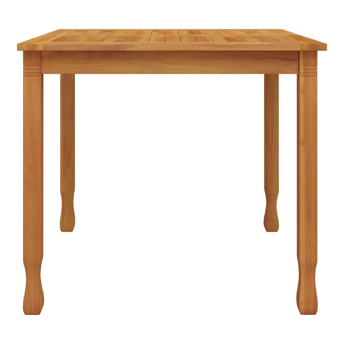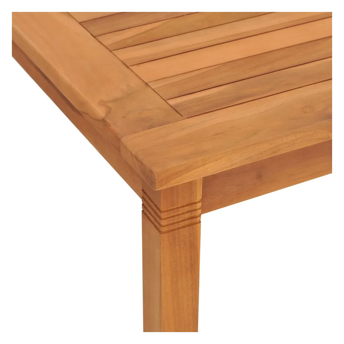 vidaXLProfitez de votre temps libre avec votre famille et vos amis autour de cette table à manger en bois ! Bois de teck massif : le bois de teck massif est un matériau naturel magnifique. Il a été chevronné, séché au four, puis sablé finement pour lui donner une apparence très lisse. Le bois de teck est connu pour sa résistance exceptionnelle et sa résistance aux intempéries.Cadre stable et robuste : le cadre en bois de la table assure robustesse et stabilité.Dessus de table spacieux : la table à manger en bois vous offre un dessus de table spacieux. Vous pouvez placer vos collations, boissons et n'importe laquelle de vos décorations préférées.Nombreuses applications : la table à manger a un design intemporel et s'adapte à presque tous les décors. Vous pouvez la placer dans votre maison ou dans n'importe quel patio commercial, jardin, balcon, etc. Remarque : Pour que vos meubles d'extérieur restent beaux, nous vous recommandons de les protéger avec une housse imperméable. Bon à savoir :Pour faciliter au maximum le montage, chaque produit est livré avec des instructions.