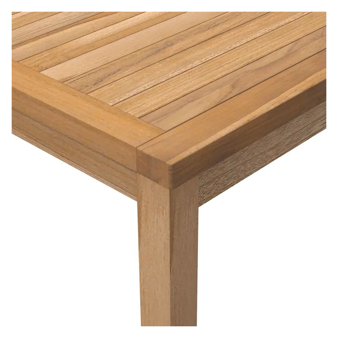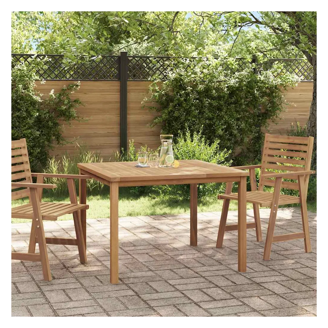 vidaXLCette table de salle à manger en bois avec une finition à base d'eau ajoutera une touche de charme naturel à votre cuisine, jardin ou terrasse. Fabriquée en bois dur de teck extrêmement durable, cette pièce de meuble en teck a été chevronnée, séchée au four puis finement poncée pour lui donner un aspect très lisse. Le bois de teck est connu pour sa résistance exceptionnelle aux intempéries, ce qui le rend bien plus adapté aux meubles de jardin que tout autre type de bois. Le bois de teck est le choix idéal si vous souhaitez acheter une pièce de meubles de jardin durable. Une belle finition à base d'eau est appliquée pour donner au bois une couleur chaude. Grâce à sa résistance à l'eau et à son aspect classique, vous pouvez placer cette pièce de mobilier partout autour de votre maison - à l'intérieur ou à l'extérieur ! Remarque : afin de prolonger la durée de vie des meubles d'extérieur, nous vous recommandons de les protéger avec une housse imperméable.