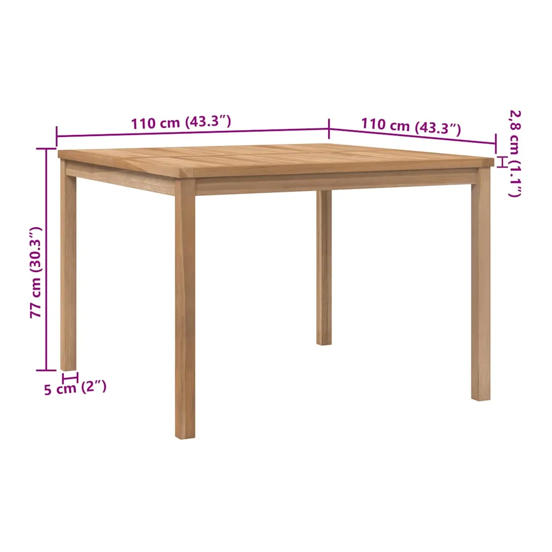 Table à dîner de jardin 110x110x77 cm Bois de teck solide