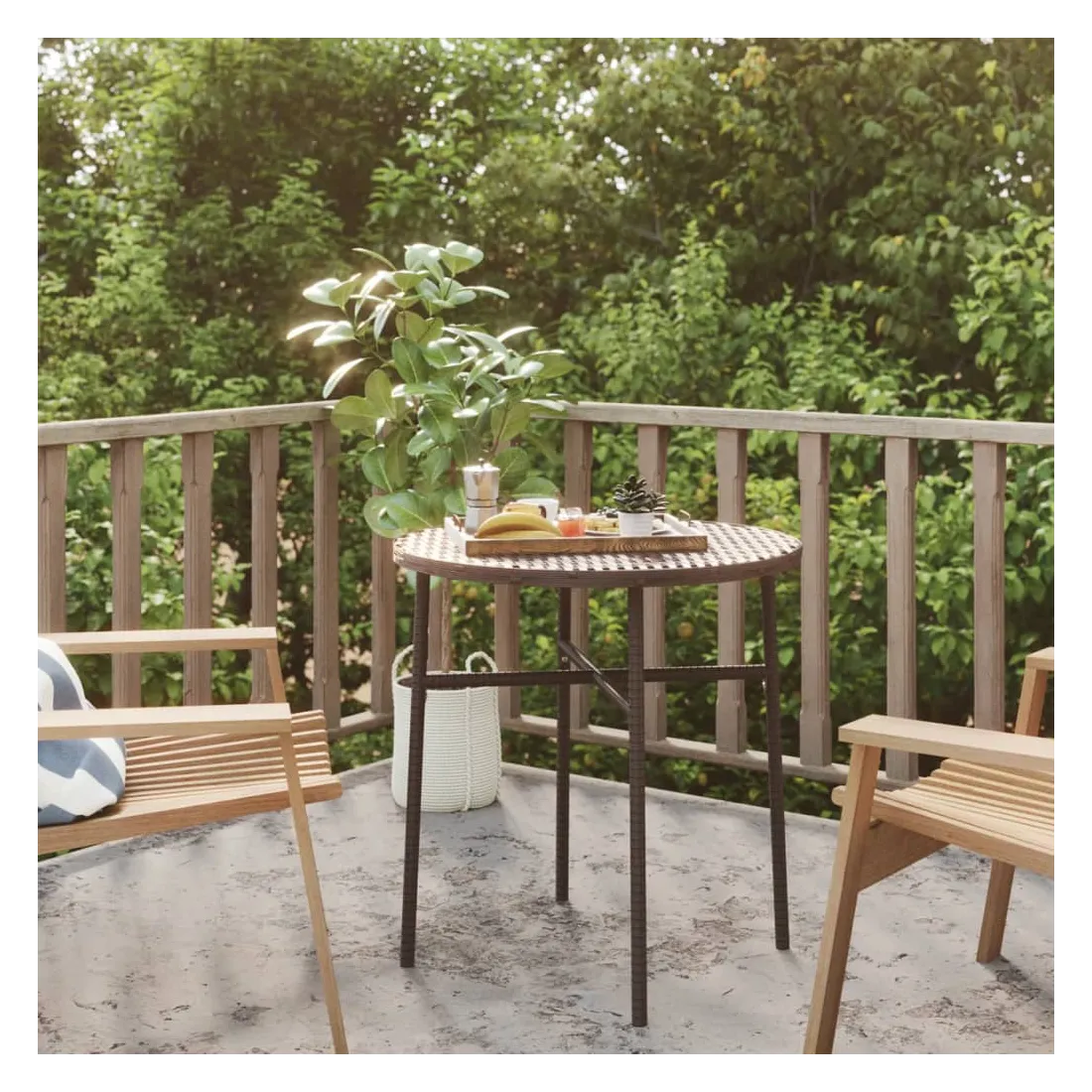 Laissez-vous emporter par une merveilleuse heure du thé avec cette table à thé ronde. Elle est conçue pour être un supplément convivial et accrocheur à votre jardin, balcon ou patio. Cette table d'extérieur, fabriquée en résine tressée résistante aux intempéries, est facile à nettoyer, résistante à l'usure et adaptée à un usage quotidien. Le panneau en PP sous le dessus de table et le cadre en acier enduit de poudre la rendent robuste et durable. La table est également excellente pour garder les boissons et la nourriture à portée de main. Remarque : afin de prolonger la durée de vie des meubles d'extérieur, nous vous recommandons de les protéger avec une housse imperméable.