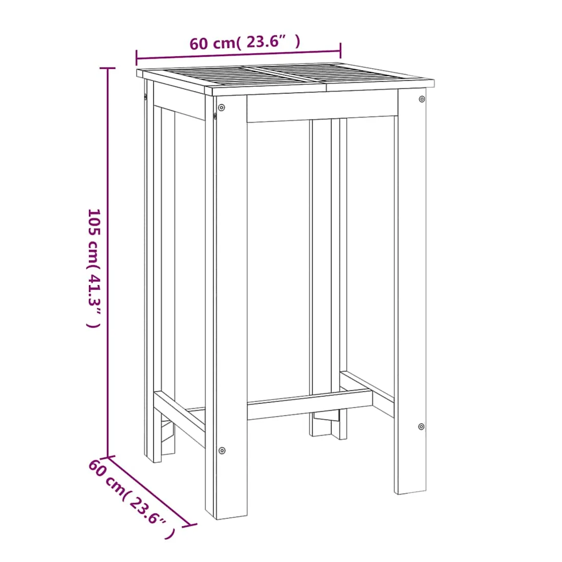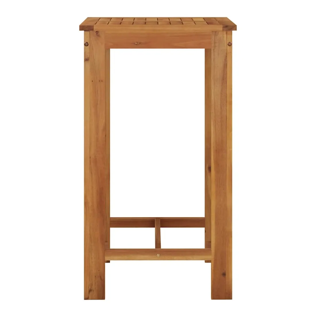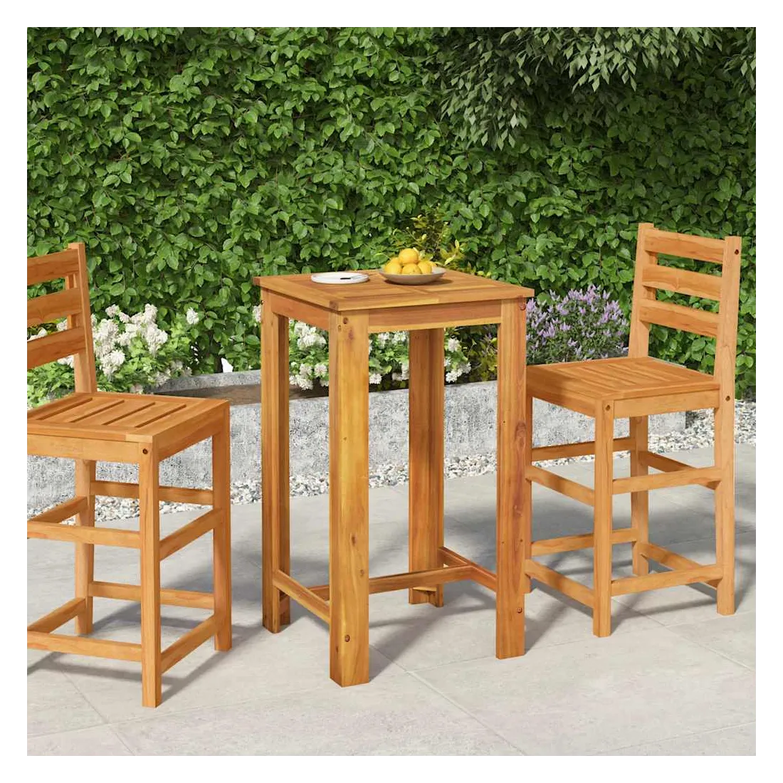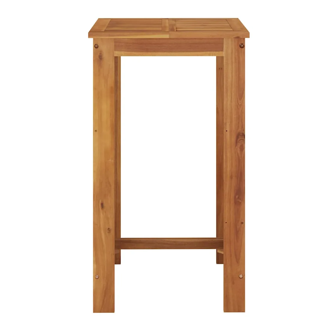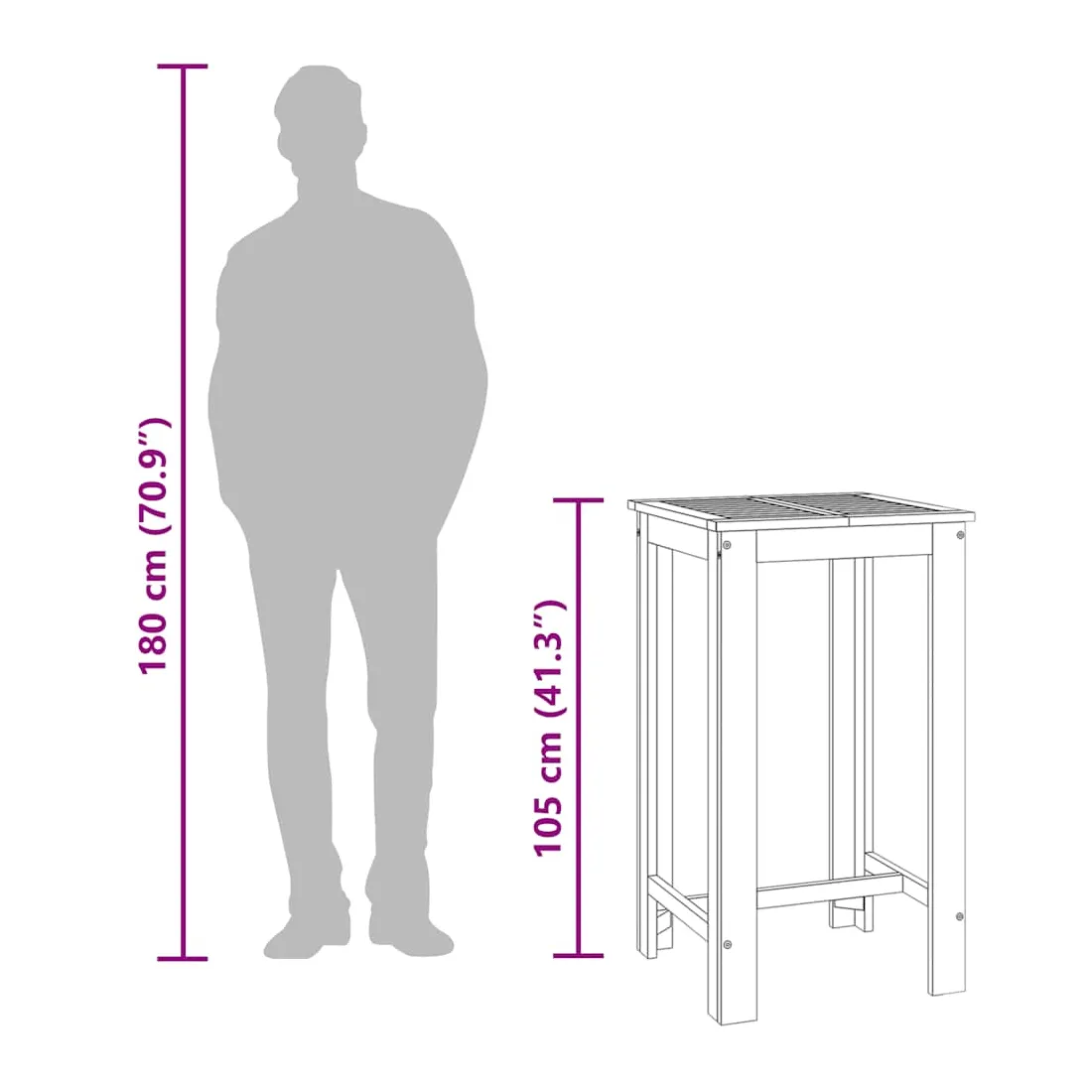 Prenez une gorgée de votre vin préféré ou dégustez un bon repas autour de cette table de bar de jardin en bois. Matériau durable : le bois d'acacia massif est un matériau naturel magnifique. Le bois d'acacia un bois dur tropical, qui est dense, robuste et durable.Fonctions multiples : cette table de bar élégante convient à une utilisation à l'intérieur et à l'extérieur. Elle peut également être utilisée comme table à manger.Surface facile à nettoyer : grâce à la construction en bois avec une finition à l'huile, cette table de bistrot est facile à nettoyer avec un chiffon humide. Remarque :Chaque produit est livré avec un manuel de montage dans la boîte pour un montage facile.Afin de prolonger la durée de vie de votre mobilier d'extérieur, nous vous recommandons de le protéger avec une housse imperméable.