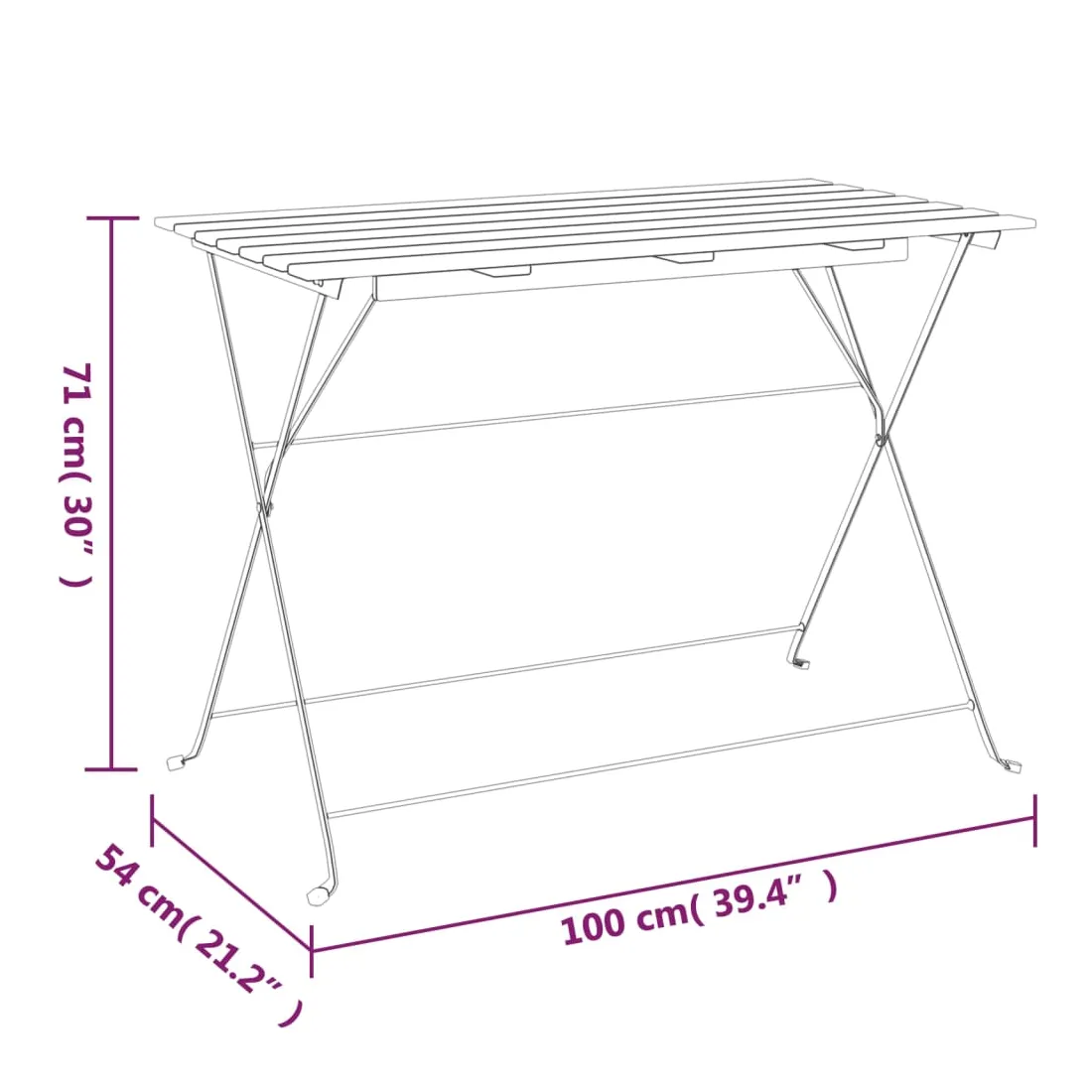 Cette table de bistro pliante est conçue pour être un supplément pratique et décoratif à votre jardin, balcon ou terrasse. Matériau durable : le bois d'acacia massif est un matériau naturel magnifique. Le bois d'acacia un bois dur tropical, qui est dense, robuste et durable.Cadre stable : le cadre en acier assure la robustesse et la stabilité.Design pliable : la table peut être facilement pliée lorsqu'elle n'est pas utilisée pour faciliter le rangement et le transport. Bon à savoir :Pour faciliter au maximum le montage, chaque produit est livré avec des instructions. Remarque :Pour que vos meubles d'extérieur restent beaux, nous vous recommandons de les protéger avec une housse imperméable.