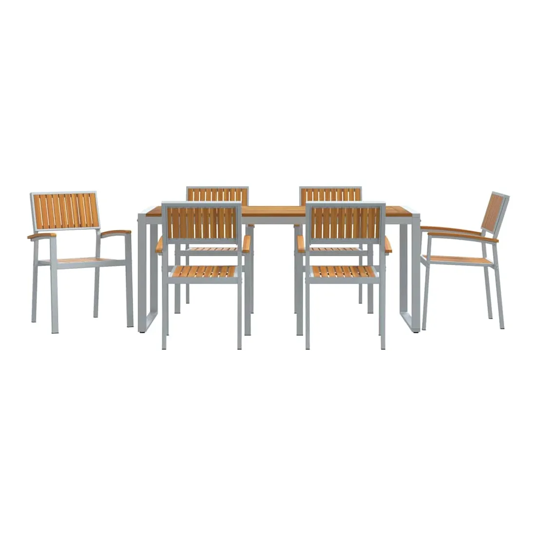 Cet ensemble de salle à manger de jardin moderne dépasse les attentes avec son design élégant et sa grande fonctionnalité, parfait pour les jardins et terrasses. Le mélange de bois d'acacia massif et d'acier incarne un style moderne, offrant un meuble chic pour des repas dehors, des soirées en famille ou des moments conviviaux. Conçu pour s'adapter à tous les jardins, il se marie aussi bien aux espaces verts que aux styles minimalistes, attirant ceux qui aiment les lignes simples et pratiques. Bois d'acacia massif : Ce matériau de choix donne du caractère et du charme à cet ensemble, tout en résistant bien aux intempéries, parfait pour manger dehors. Ses belles teintes s'associent facilement à tous les styles de jardin. Pieds en acier : Les pieds robustes assurent stabilité sur tous types de surfaces, que ce soit sur l'herbe ou le carrelage. Cela donne une allure épurée et moderne à l'ensemble, tout en restant solide même lors de grands repas ou barbecues. Forme rectangulaire : Pensée pour la convivialité, la forme rectangulaire facilite les conversations et les repas en groupe. Elle se fond bien dans des jardins ou terrasses structurés, maximisant l'espace sans renoncer au style. Composants inclus : Cet ensemble chic inclut des dossiers et accoudoirs en bois d'acacia massif. Ils offrent un bon soutien ergonomique pour un confort prolongé. Le dos bien fini montre une belle attention aux détails. Instructions d'entretien : Garder l'ensemble en bon état est simple : un coup de chiffon sec pour la poussière suffit. Protège-le des intempéries pour qu'il dure longtemps, et tu pourras en profiter pendant des années.