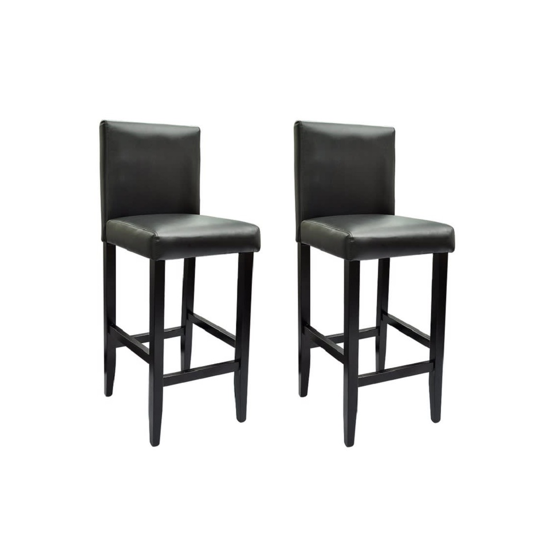 Cet ensemble de tabourets de bar en noir présente un design classique qui complètera tout environnement familial moderne. L'assise et le dossier de la chaise sont rembourrés pour votre confort. Sa jambe en bois assure la stabilité, en même temps ajoute une touche d'élégance à l'ensemble. La chaise est en simili cuir, qui est durable et très facile à nettoyer. Il est idéal pour une utilisation à la fois comme un espace de siège supplémentaire à la maison, ou comme un tabouret de bar dans un café. Dans tous les cas, ces chaises se mélangent de façon transparente dans l'environnement. La livraison comprend 2 tabourets de bar en noir.