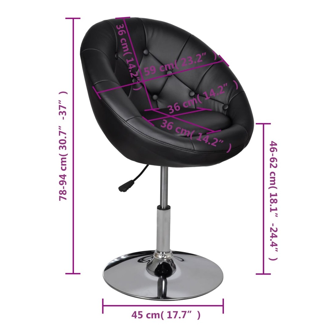 - Dimensions totales : 59 x 58 x (78-94) cm (l x P x H)