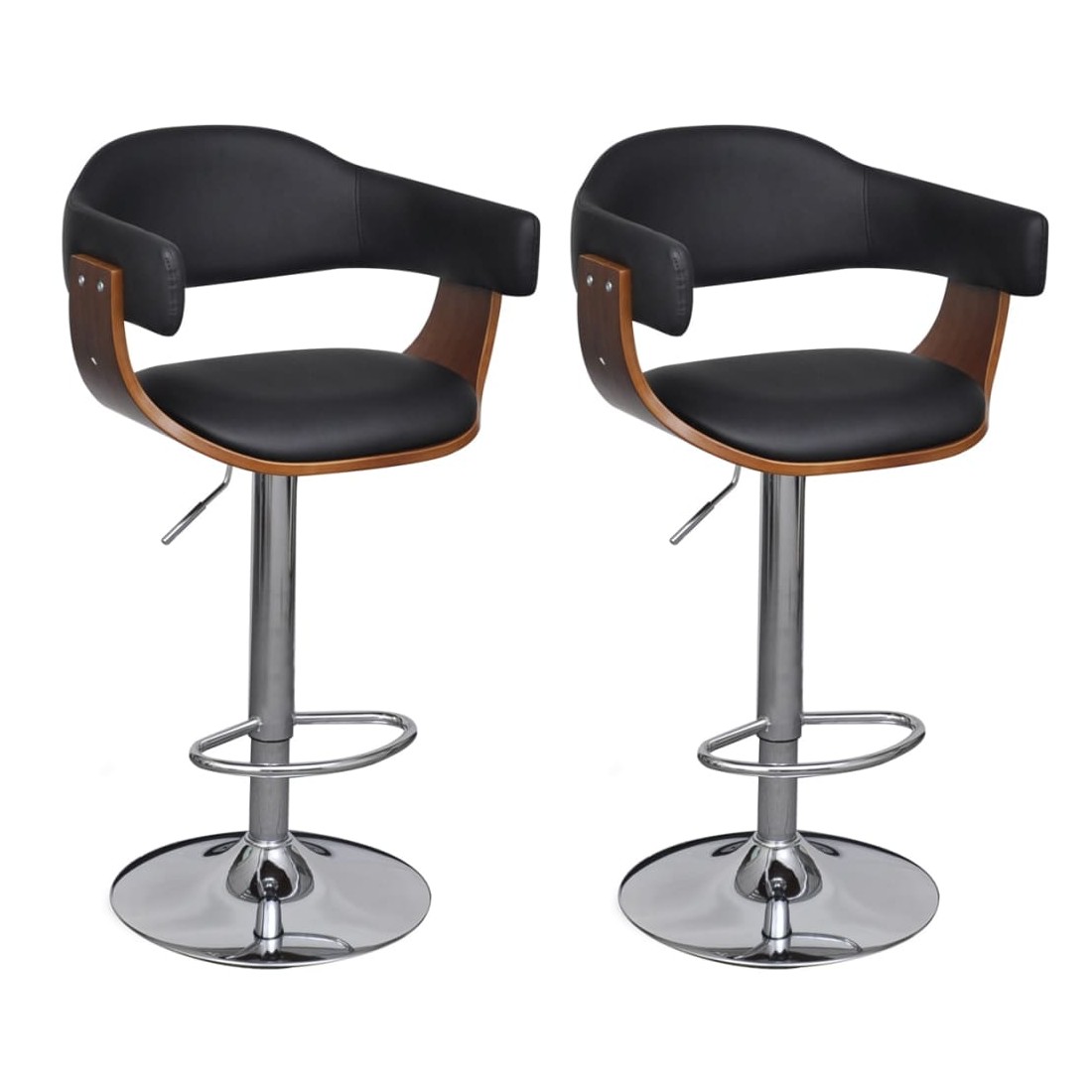 Cet ensemble de tabourets de bar, avec son design intemporel et propre, vous apportera indéniablement un bon confort d'assise. Le tabouret, recouvert de cuir synthétique de haute qualité, est rembourré afin de vous offrir un confort optimal. Par ailleurs, son cadre en bois courbé lui donne une beauté et un style uniques. De plus, sa structure de fer offre une robustesse élevée tandis que le repose-pieds intégré augmente le confort de l'utilisateur. Sa conception ergonomique rend le tabouret très confortable pour se reposer pendant des heures.Grâce au mécanisme d'ajustement par gaz, la hauteur de ce tabouret de bar est facilement réglable et s'adaptera parfaitement à un bar fonctionnel ou à une salle à manger.La livraison comprend 2 tabourets de bar.