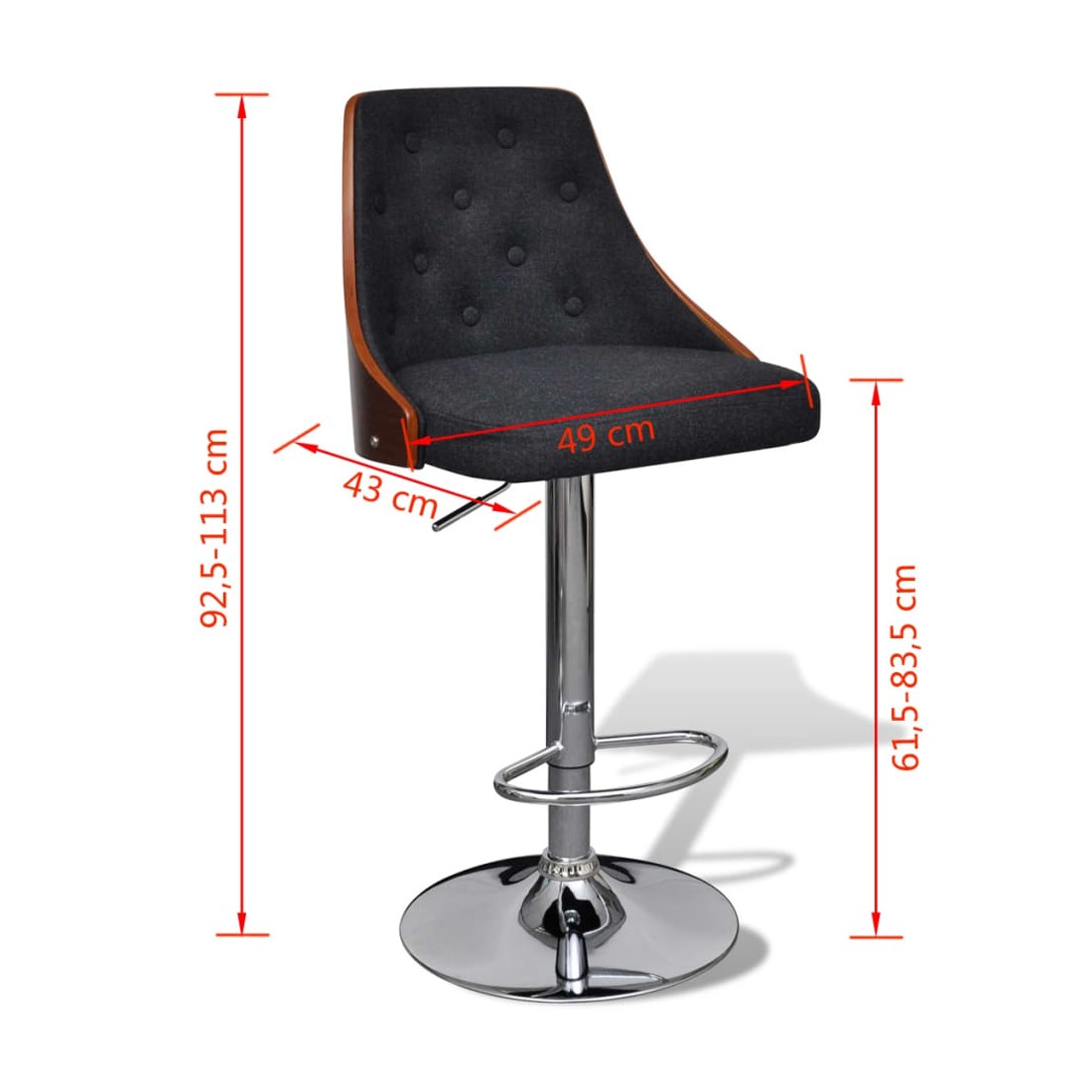 Cet ensemble de tabourets de bar, avec un design simple et élégant, vous offrira certainement le confort d'assise. Le tabouret de bar est bien rembourré pour offrir un confort optimal. Le cadre en bois courbé ajoute de la beauté et un style unique. La structure en fer offre une grande robustesse tandis que le repose-pied intégré ajoute un plaisir supplémentaire à l'assise. Le design ergonomique rend le tabouret très confortable pour vous asseoir pendant des heures. Grâce à son système de hauteur réglable à gaz, la hauteur de ce tabouret de bar peut être ajustée pour s'adapter à un bar fonctionnel ou à une salle à manger. La livraison comprend 2 tabourets de bar.