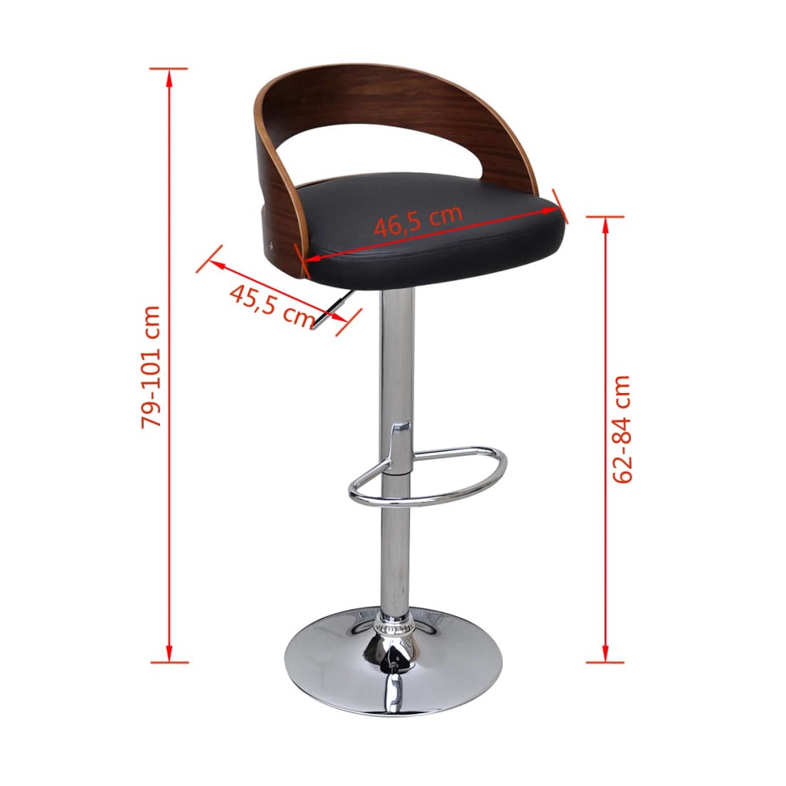Ce set de tabourets de bar, au design contemporain remarquable, est non seulement esthétique, mais aussi très confortable. L'assise, recouverte de cuir artificiel de haute qualité, est confortablement rembourrée. Le cadre en bois cintré contribue à leur beauté et leur style unique. Le cadre métallique est très robuste, tandis que le repose-pied intégré et le design ergonomique augmentent le confort d'assise. Grâce au mécanisme de levage à gaz, les tabourets de bar peuvent être réglés en hauteur. Cet ensemble fera un excellent ajout à tout bar ou salle à manger. La livraison comprend 2 tabourets de bar.