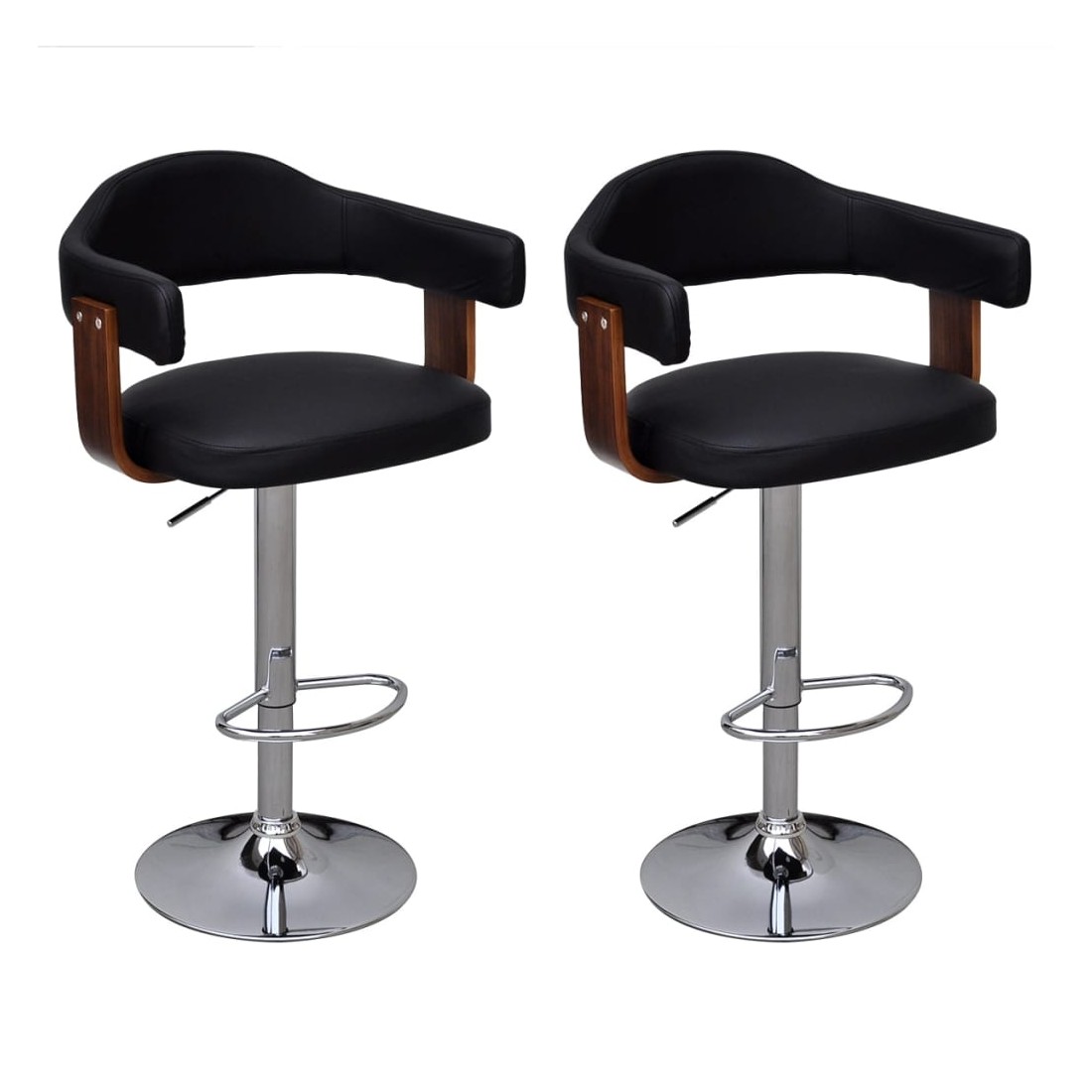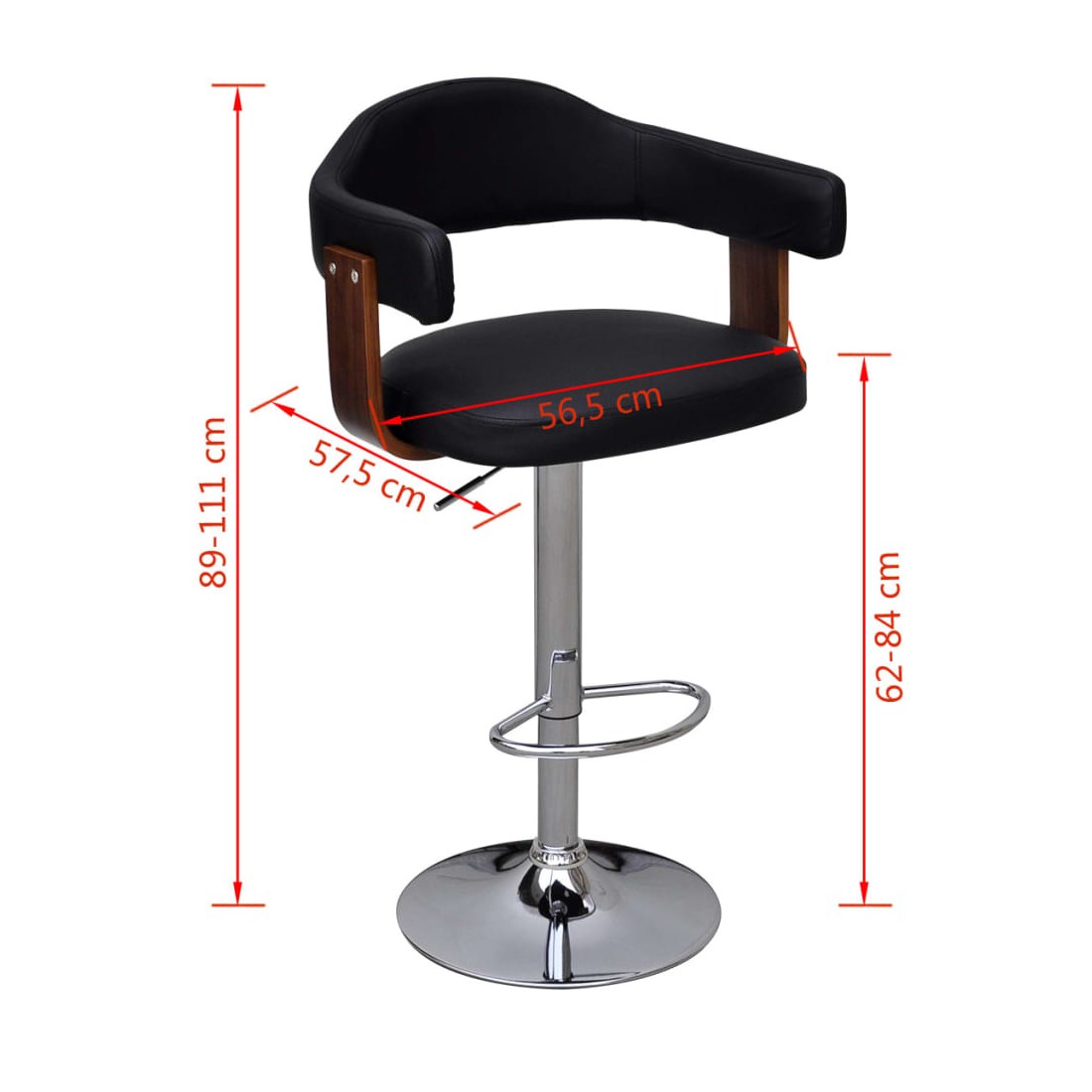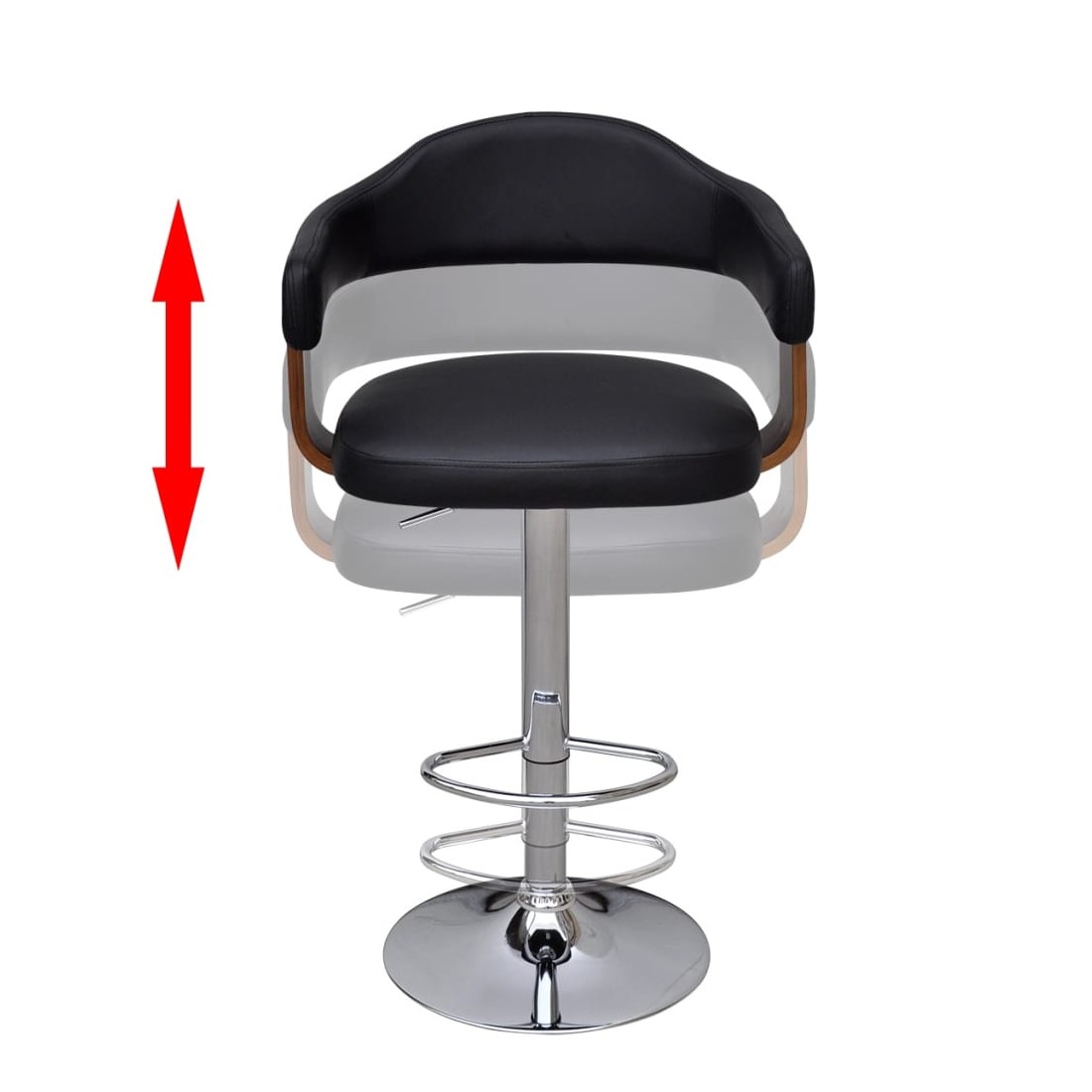 Ce set de tabourets de bar, au design contemporain remarquable, est non seulement esthétique, mais aussi très confortable. L'assise, le dossier et les accoudoirs sont recouverts de cuir artificiel de haute qualité, est confortablement rembourrés. Le cadre en bois cintré contribue à leur beauté et leur style unique. Le cadre métallique est très robuste, tandis que le repose-pied intégré et le design ergonomique augmentent le confort d'assise. Grâce au mécanisme de levage à gaz, les tabourets de bar peuvent être réglés en hauteur. Cet ensemble fera un excellent ajout à tout bar ou salle à manger. La livraison comprend 2 tabourets de bar.
