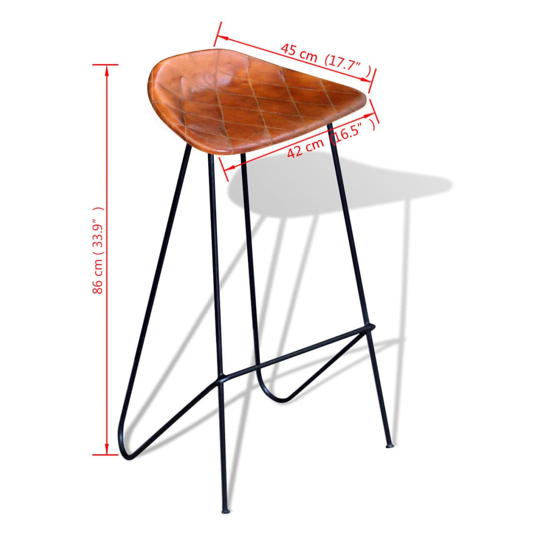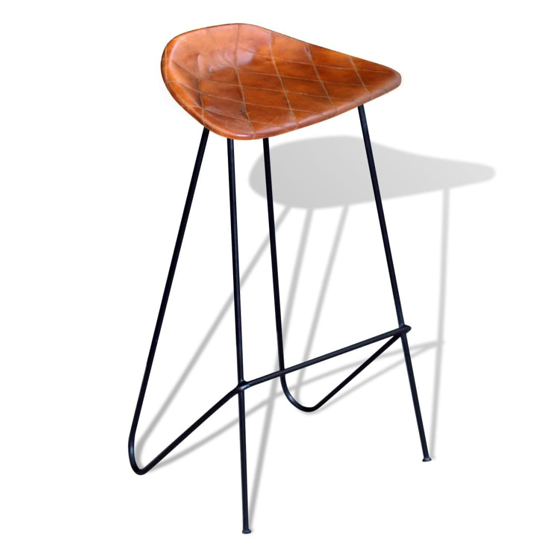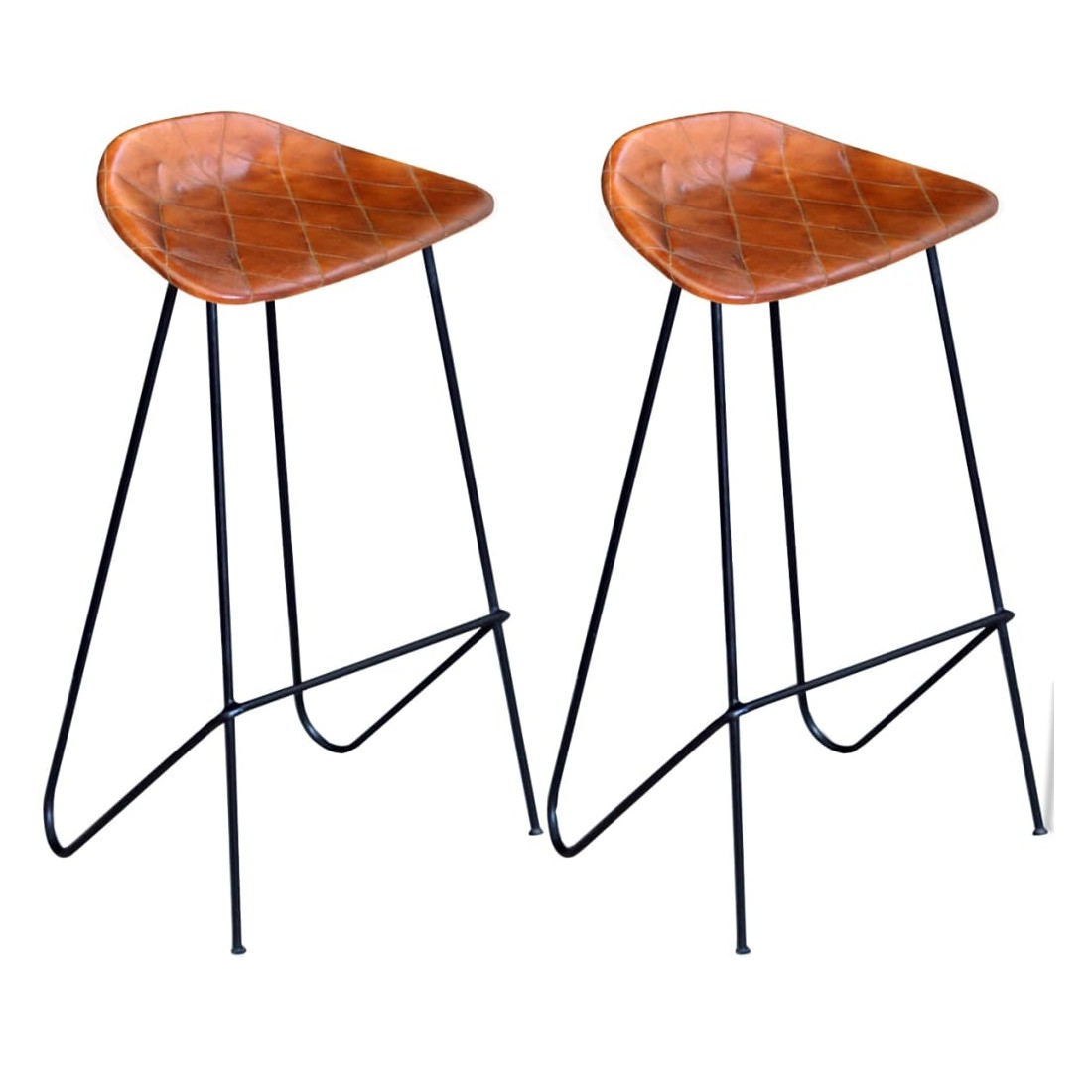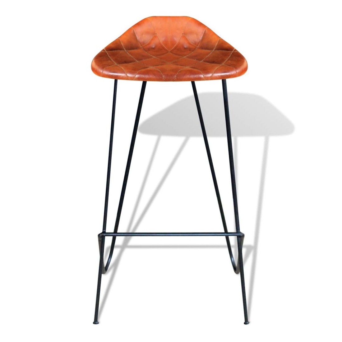 Cette chaise en cuir véritable souple et confortable a un aspect emblématique, en harmonie avec le style industriel qui fait fureur en ce moment. Cet ensemble de chaises sera parfait non seulement dans les restaurants ou les bars, mais aussi dans votre salon ou salle à manger à la maison. Le cuir véritable rembourré est doux au toucher et rend la chaise extrêmement durable. Le siège en cuir de chèvre doux avec de jolies coutures en forme de diamant rend le siège une expérience confortable, tandis que les pieds en fer solides avec repose-pieds font le tabouret stable et durable. La livraison comprend 2 chaises de bar en cuir.
