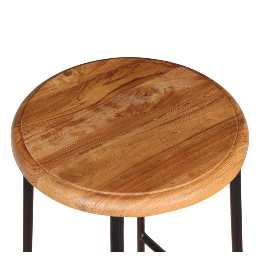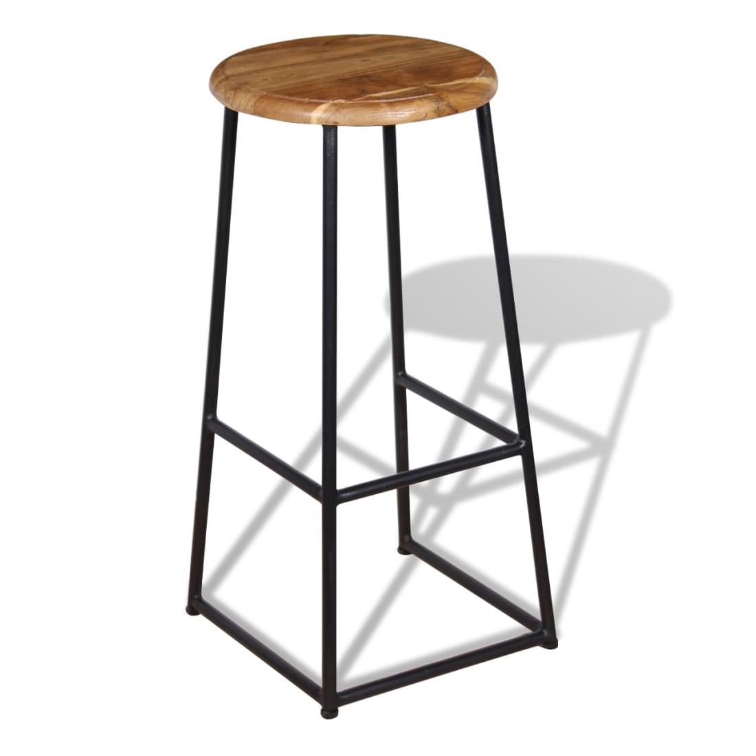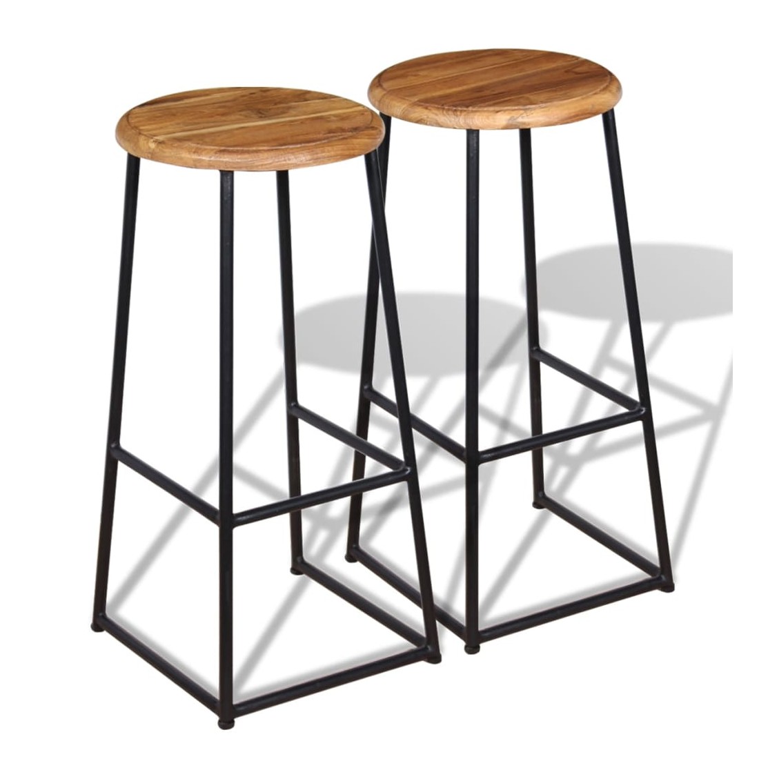 Cet ensemble de tabourets de bar en bois avec son design cool, industriel, conviendra à tout décor. Fabriqués en bois de teck massif, ces tabourets sont robustes et durables. Le cadre est fait de fer durable qui s'ajoute à leur robustesse et peut être facilement nettoyé. L'artisanat et les beaux grains de bois rendent chaque pièce de mobilier unique et légèrement différent de l'autre. Remarque importante : les couleurs varient d'une pièce à l'autre, rendant chacune de nos chaises unique. La livraison est aléatoire, ce qui garantit l'exclusivité et l'individualité de votre produit. La livraison comprend 2 chaises de bar.