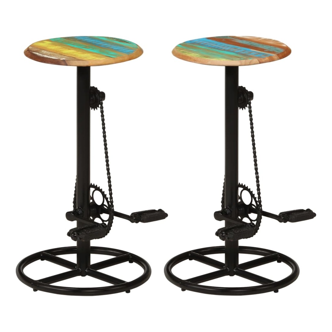 Cet ensemble de 2 chaises de bar en bois sera un supplément intemporel à la décoration de votre cuisine ou salle à manger. Les tabourets de bar sont faits de bois de récupération massif et d'acier et sont très stables et durables. Le bois de récupération provient des solives, des planchers et des poutres de soutien des vieux bâtiments démolis et peut être composé de différents types de bois comme le pin, le teck, le hêtre, le chêne, le cèdre, le bois de manguier, l'acacia, etc. Cela signifie que le bois de récupération conserve les caractéristiques de ces différents types de bois. Le bois de récupération est déjà vieilli, patiné et séché, donc il ne rétrécit pas et ne se plie pas. Chaque étape du processus de fabrication est réalisée avec le plus grand soin, que ce soit la recombinaison, le polissage, la peinture ou le laquage. La livraison comprend 2 chaises de bar. Cet ensemble doit être assemblé. Remarque importante : les couleurs et les grains de bois peuvent varier d'une pièce à l'autre, ce qui rend chaque pièce unique et légèrement différente l'une de l'autre ; la livraison est aléatoire.