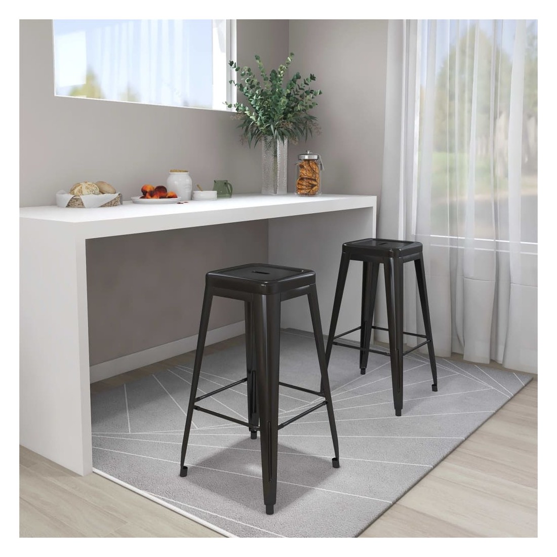 Ajoutez une touche industrielle à votre comptoir de cuisine ou à d'autres espaces avec notre ensemble de 2 tabourets de bar. Ces tabourets s'adaptent à la plupart des occasions, comme les bars, les fêtes en plein air, les cafés, les restaurants, etc. Ce tabouret de bar est fabriqué en métal avec une finition peinte, ce qui le rend solide et durable. La barre transversale renforcée sous le siège et le repose-pied renforce la stabilité. Lorsqu'il n'est pas utilisé, ce tabouret de comptoir peut être empilé pour un rangement facile, ce qui est idéal pour un espace limité.