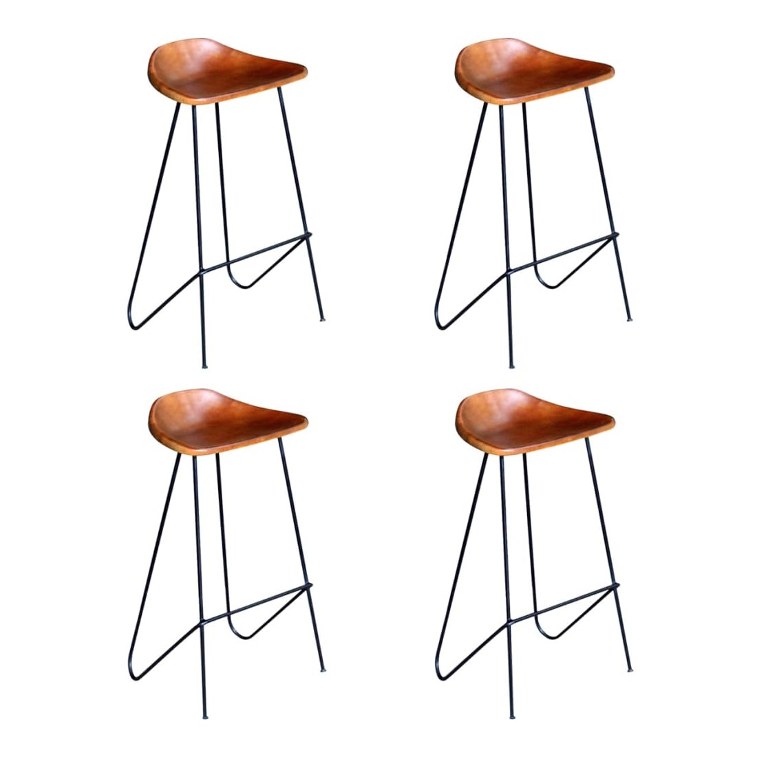 Cette chaise de bar en cuir véritable souple et confortable a un aspect emblématique, en harmonie avec le style industriel qui fait fureur en ce moment. Elle sera parfaite non seulement dans les restaurants ou les bars, mais aussi dans votre salon ou salle à manger à la maison. Le cuir véritable rembourré est doux au toucher et rend la chaise extrêmement durable. La surface en cuir de chèvre doux est faite pour une expérience d'assise confortable, tandis que les pieds en fer solides avec repose-pieds rendent le tabouret stable et durable. La livraison comprend 4 chaises de bar en cuir.
