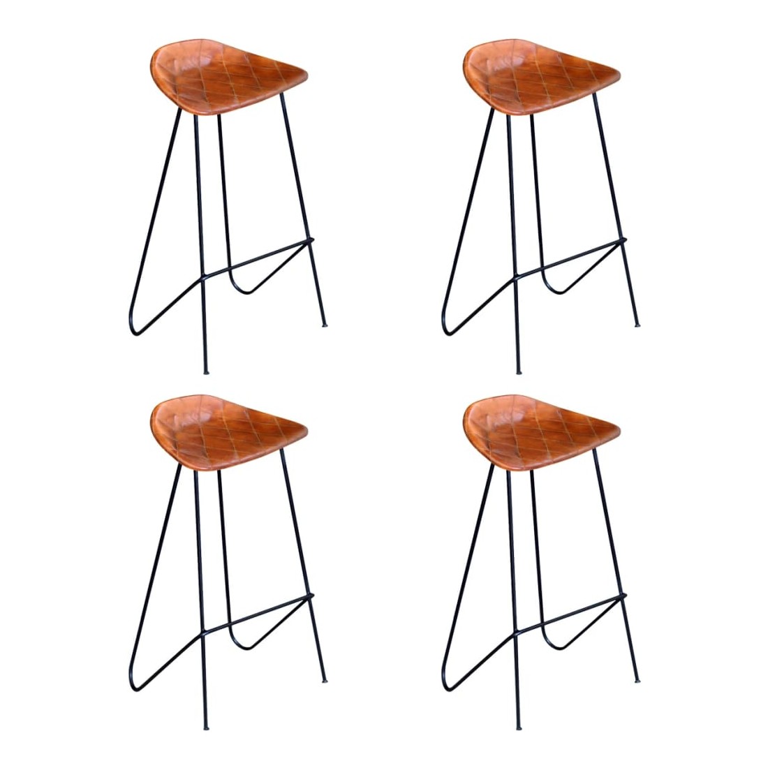 Chaises de bar lot de 4 marron cuir véritable