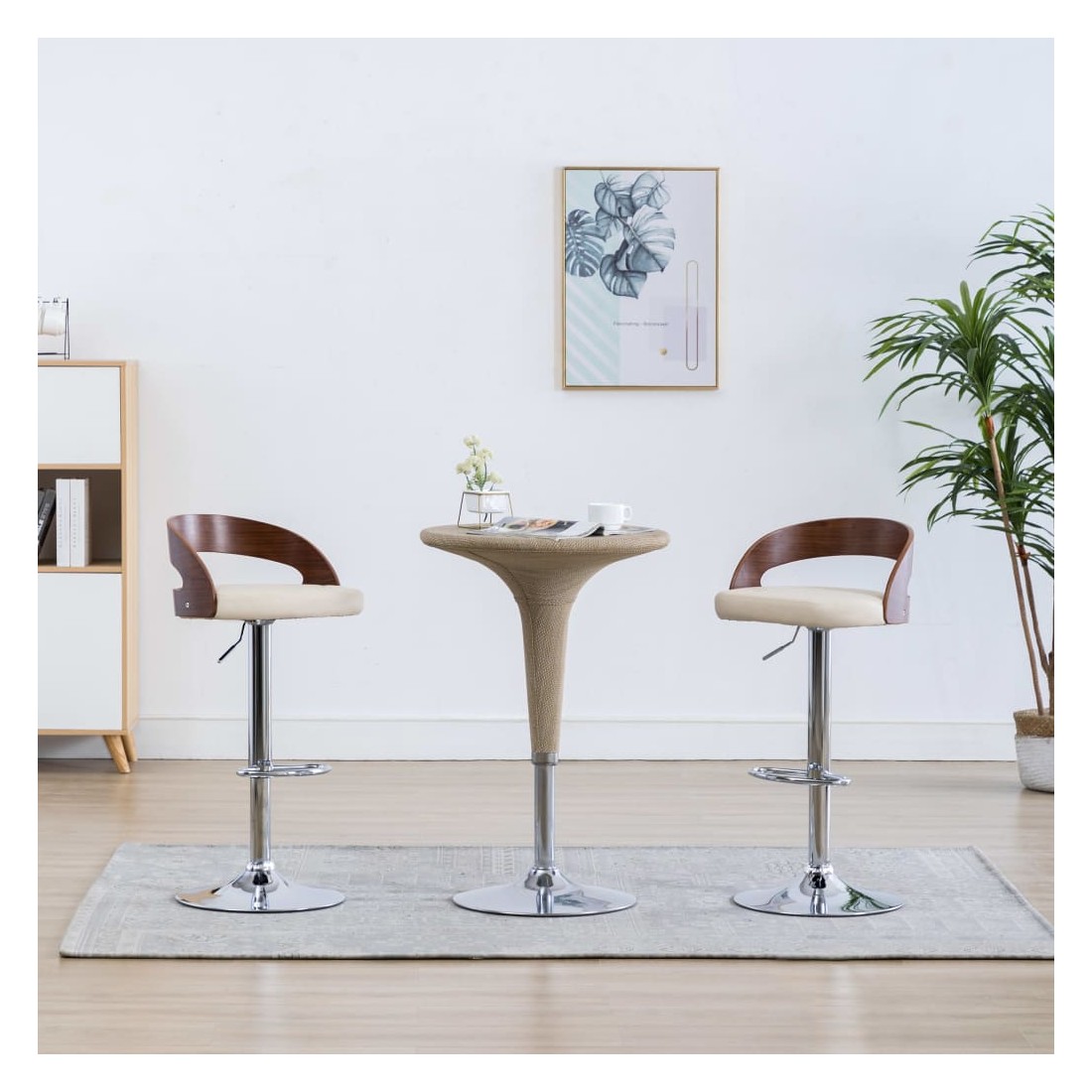 Ajoutez instantanément un goût moderne impressionnant à votre décoration intérieure avec nos élégantes chaises de bar ! Cet ensemble de chaises de comptoir, avec un design contemporain frappant, est non seulement esthétique, mais aussi très confortable. Expérience d‘assise confortable : l'assise, recouverte de cuir artificiel de haute qualité, est confortablement rembourrée. Le repose-pieds intégré et la conception ergonomique ajoutent au confort d'assise.Cadre robuste : le cadre en métal est très robuste et le cadre en bois cintré contribue à leur beauté et leur style unique.Hauteur réglable : grâce au mécanisme de levage à gaz, les chaises de pub peuvent être réglées en hauteur. Nombreuses applications : cet ensemble de chaises de bar de restaurant sera un excellent supplément à tout bar ou salle à manger.