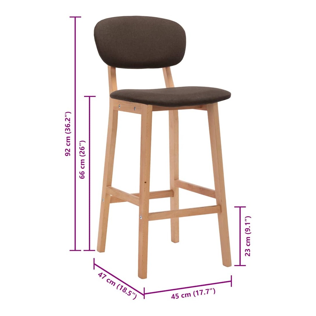 Cet ensemble de 2 chaises de bar, avec son style simpliste pourtant moderne, convient à une variété d'espaces, telles que la maison, le bureau, le bar, le café, etc. Rembourrés en tissu doux, l'assise et le dossier sont confortables pour vous y asseoir. Les pieds en bois de hêtre massif rendent cette chaise très stable et durable. Le repose-pied intégré offre un soutien supplémentaire pendant votre temps assis.
