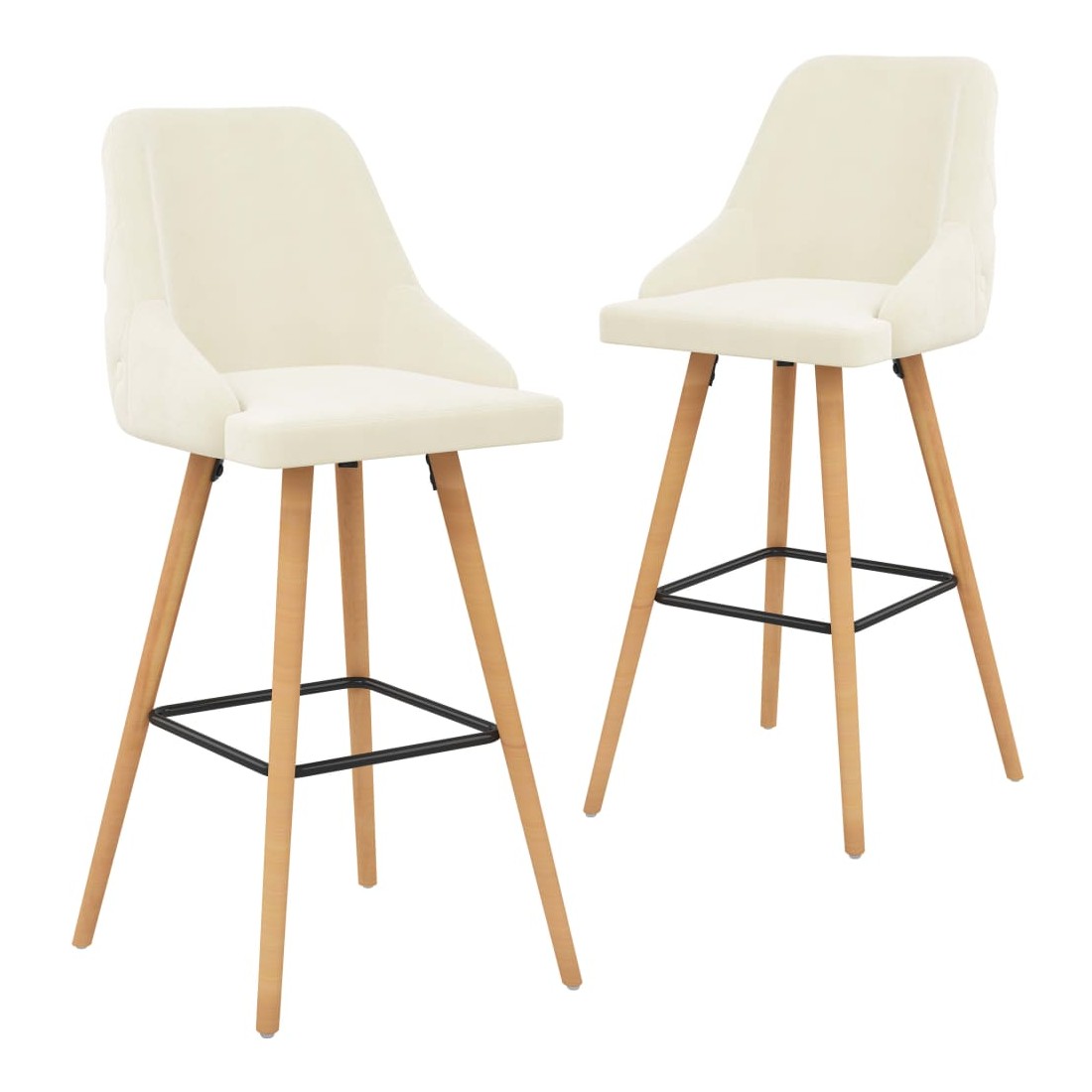 Notre ensemble de 2 chaises de bar, avec son style élégant et moderne, convient à une variété d'espaces, tels que la maison, le bureau, le bar, le café, etc. L'assise et le dossier, revêtus d'une tapisserie en velours doux au toucher, vous offriront une assise confortable. Avec ses pieds en bois de hêtre massif et son anneau noir enduit de poudre, cette chaise est stable et durable. Le repose-pied intégré ajoute également un soutien supplémentaire pendant votre temps assis.