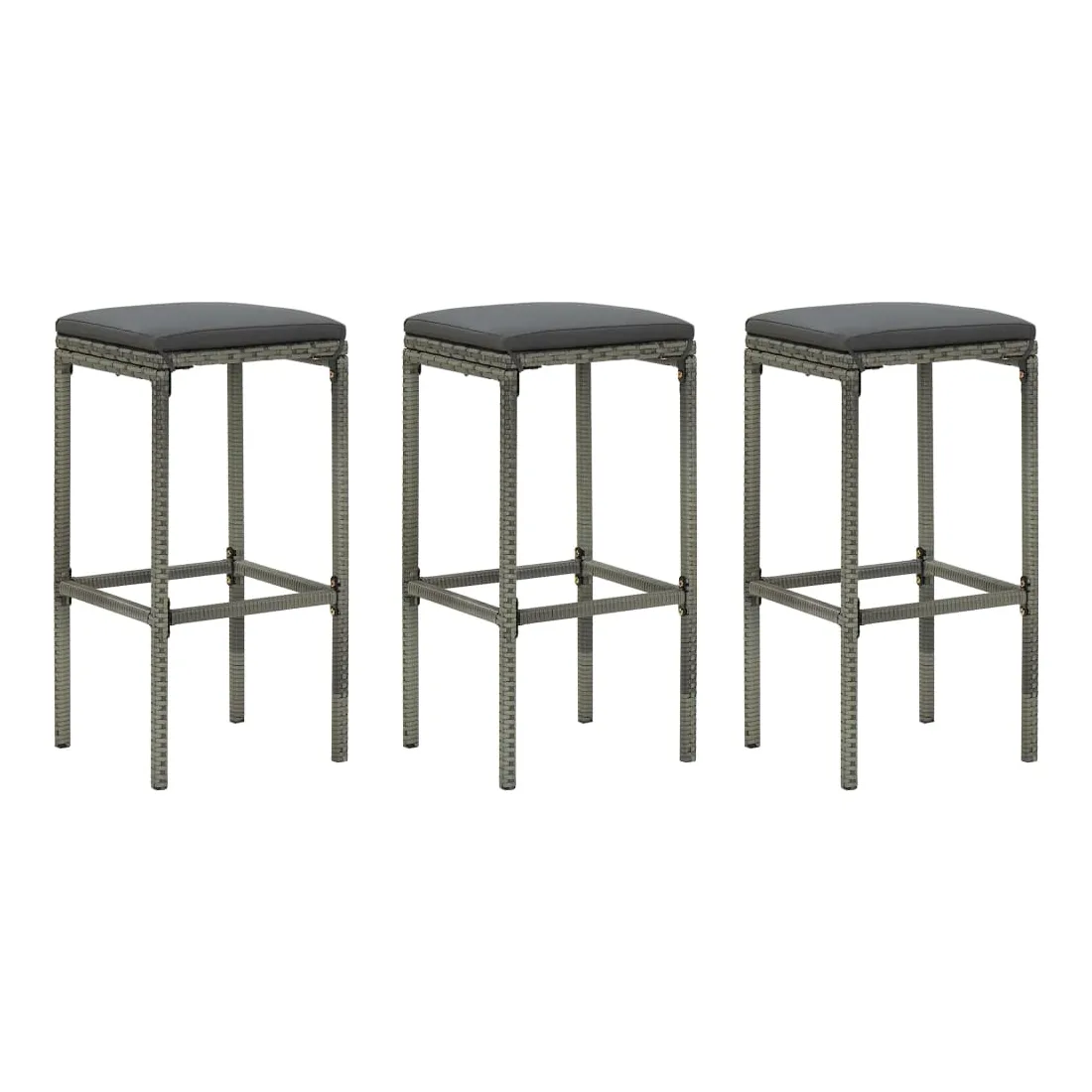 Tabourets de bar avec coussins lot de 3 gris résine tressée