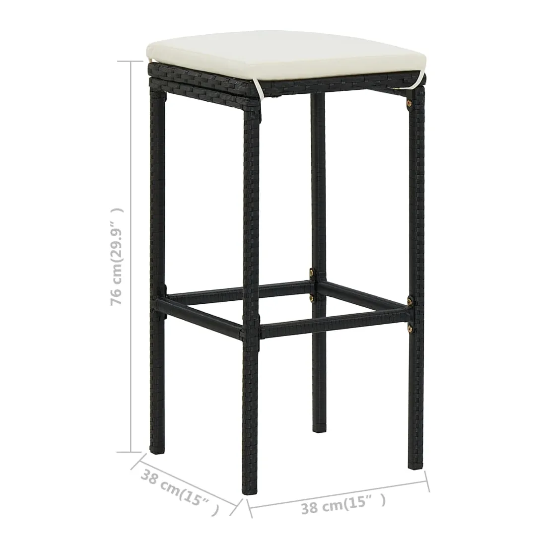 Cet ensemble de 4 tabourets de bar présente un design unique et est parfait pour les restaurants, les bars, et votre salon ou salle à manger à la maison. La chaise de bar a une construction solide de cadre en acier, ce qui le rend stable. Grâce à la résine tressée légère et résistante aux intempéries, ce tabouret de comptoir est durable et facile à déplacer. Le coussin d’assise et le repose-pied intégré ajoutent également un confort d’assise supplémentaire au tabouret. La housse de coussin en polyester, facile à nettoyer et dotée d'une fermeture éclair dissimulée, peut être retirée et lavée.