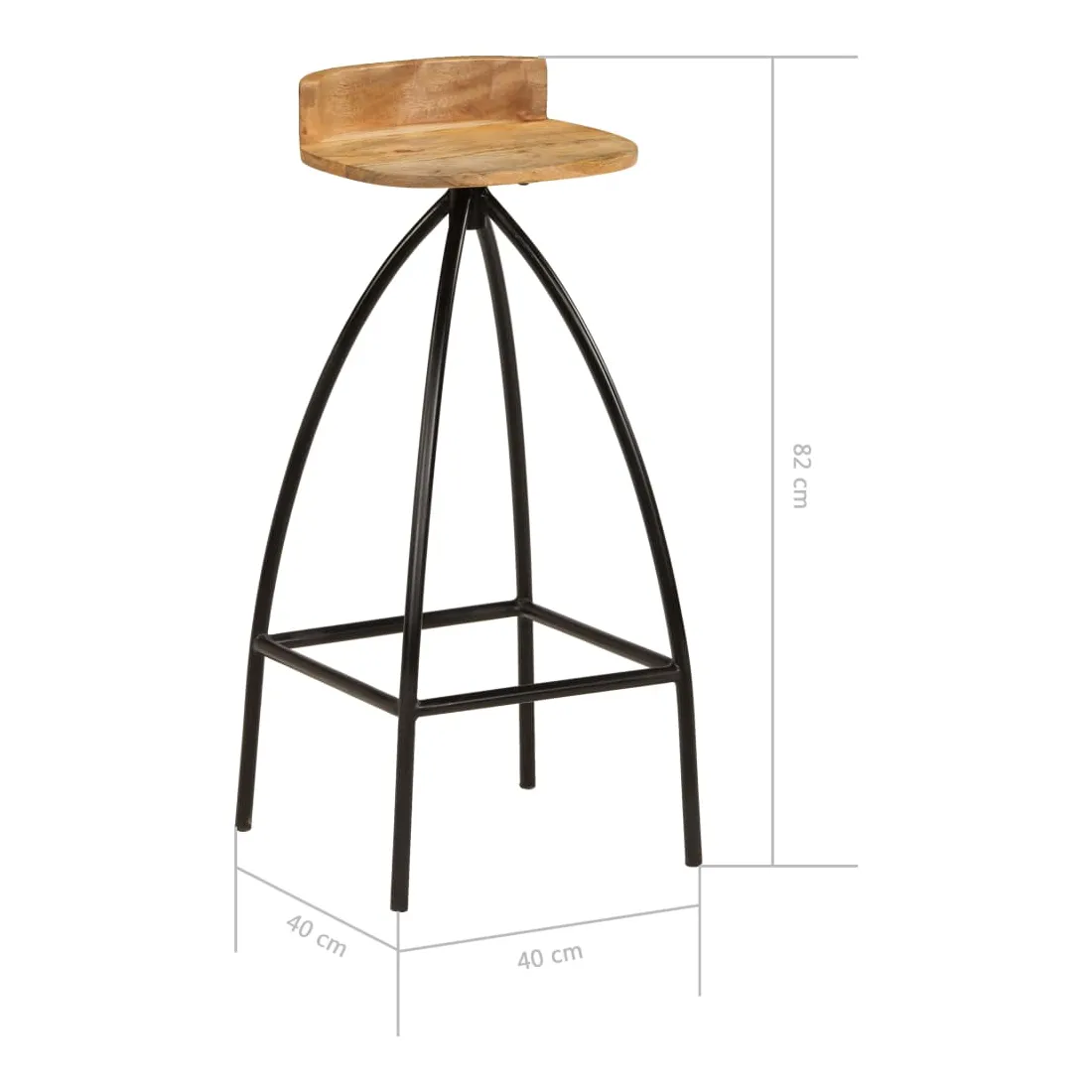 - Matériau : bois de manguier massif + acier enduit de poudre