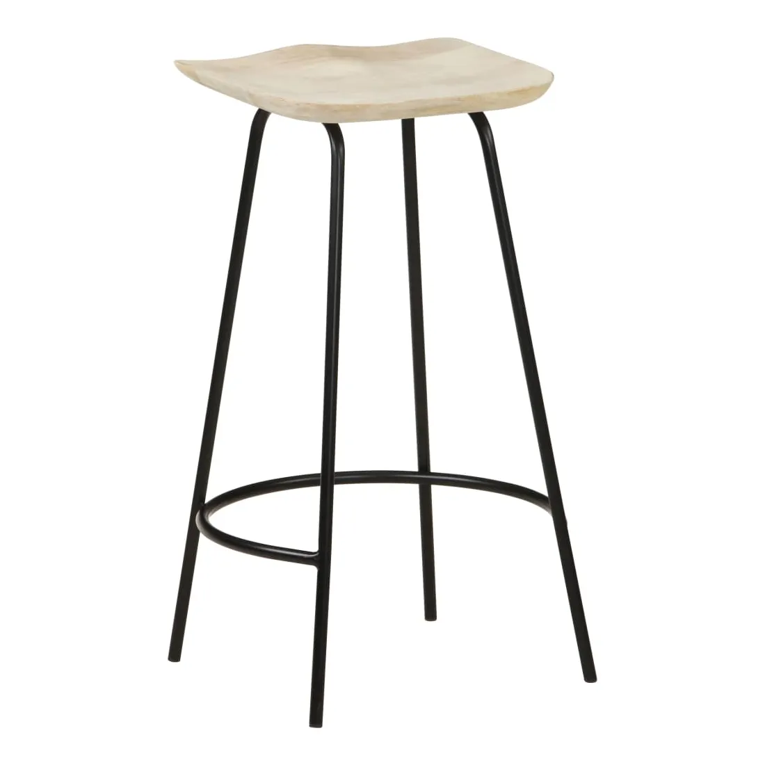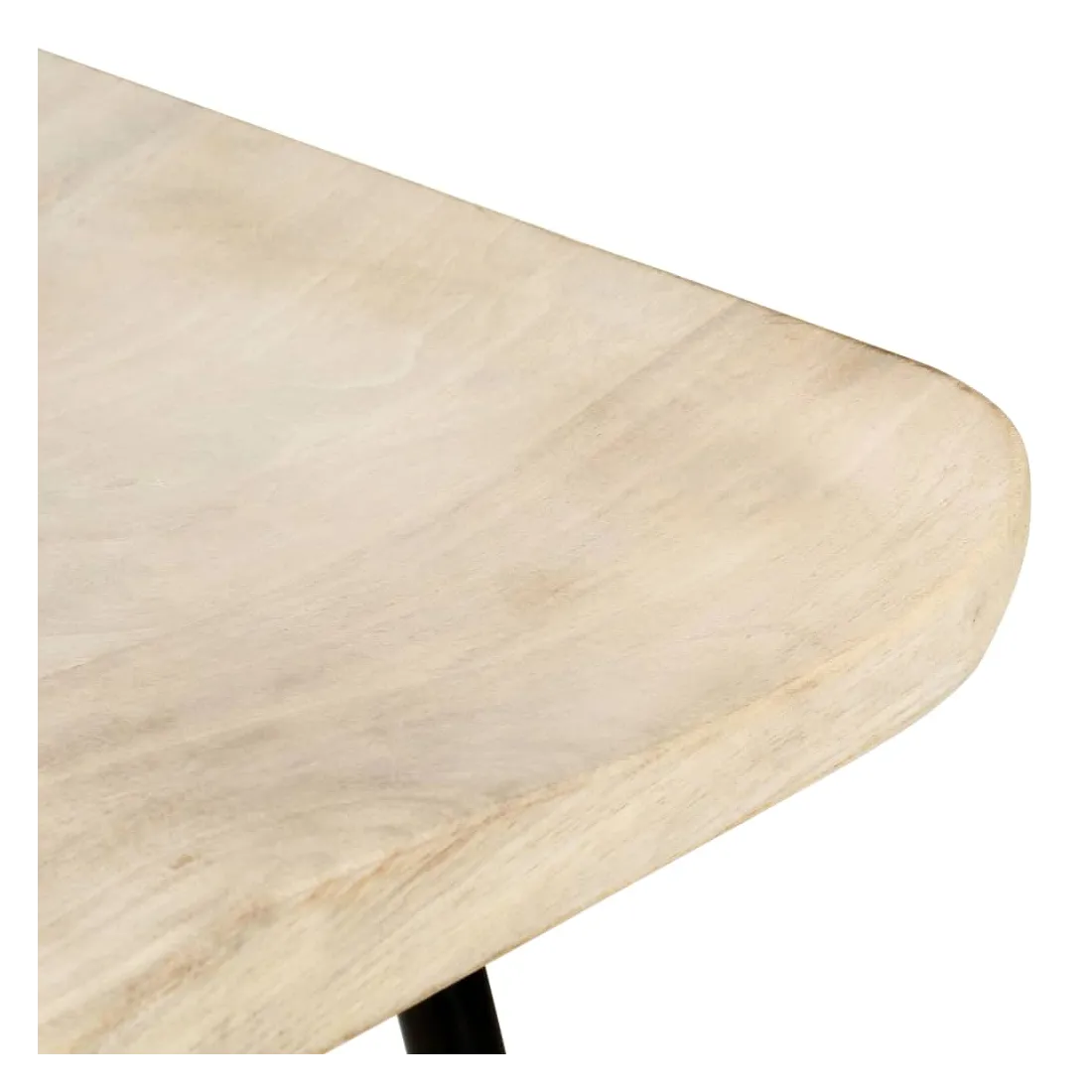 - Matériau : bois massif de manguier avec une finition javellisée, fer avec revêtement en poudre noire