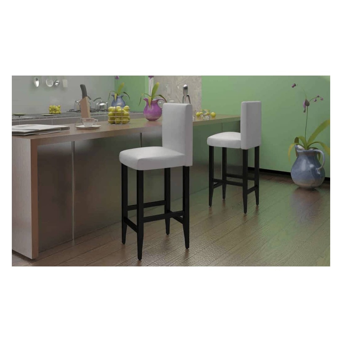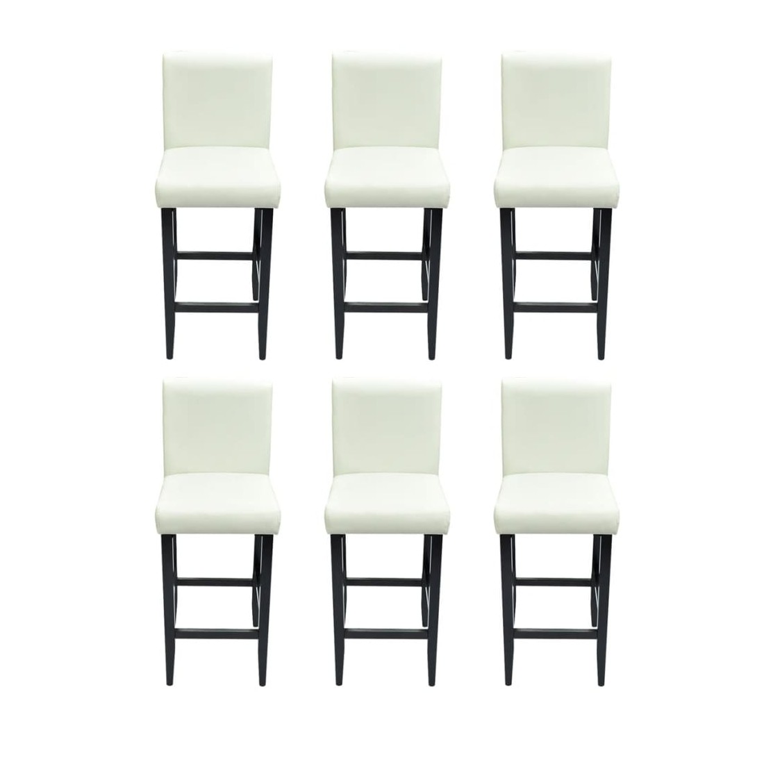 Ces tabourets de bar ont une stabilité parfaite grâce à leurs 4 pieds en bois. Les couleurs chaudes du bois peuvent s'accorder à presque tous les styles d'intérieurs. Ces tabourets ont une hauteur fixe et leur sièges ne pivotent pas. L'assise ergonomique permet de passer un bon moment tout en étant confortablement installé. Pour reposer vos jambes, vous disposez d'un repose-pieds. Comme ces tabourets sont revêtus de simili cuir, ils sont faciles à nettoyer. La livraison comprend 6 tabourets de bar en blanc.