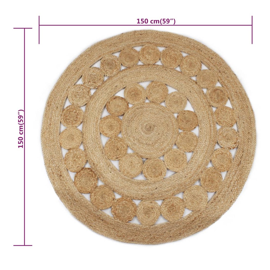 Tapis Jute design tressé 150 cm rond