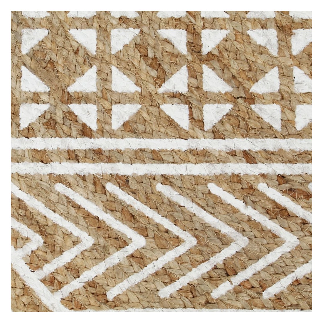 Tapis fait à la main Jute avec imprimé blanc 90 cm