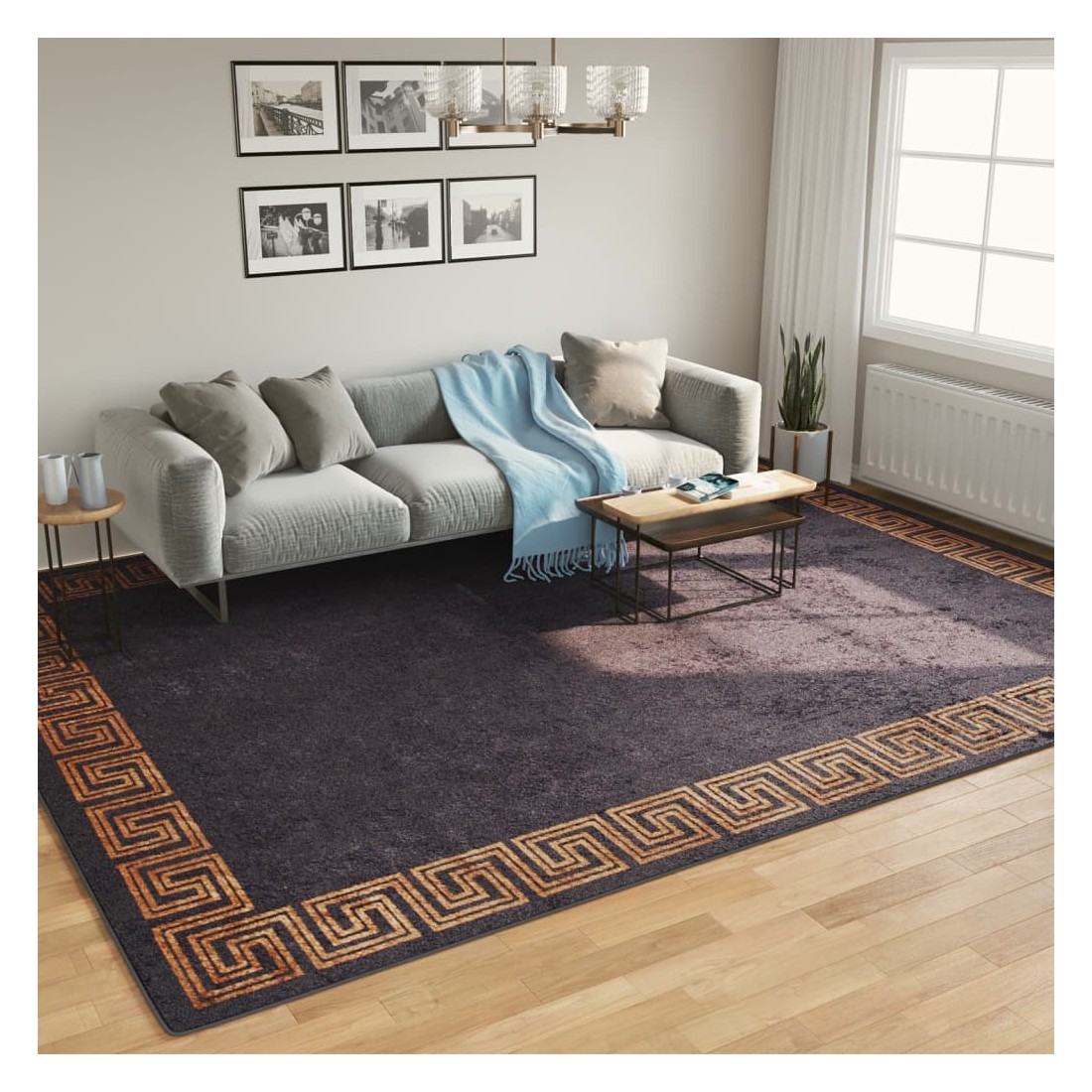 Tapis lavable noir et doré 400x300 cm antidérapant