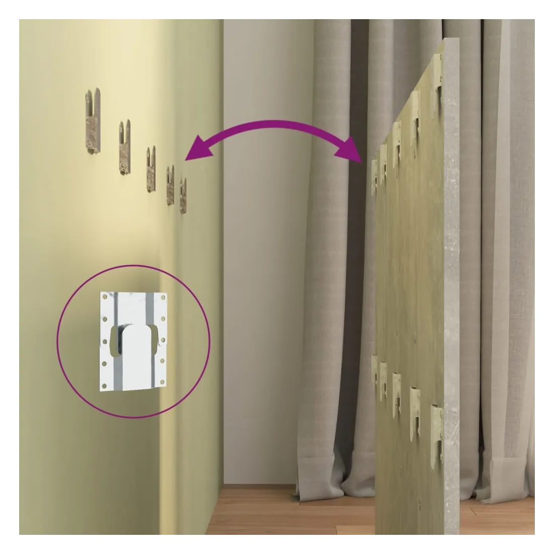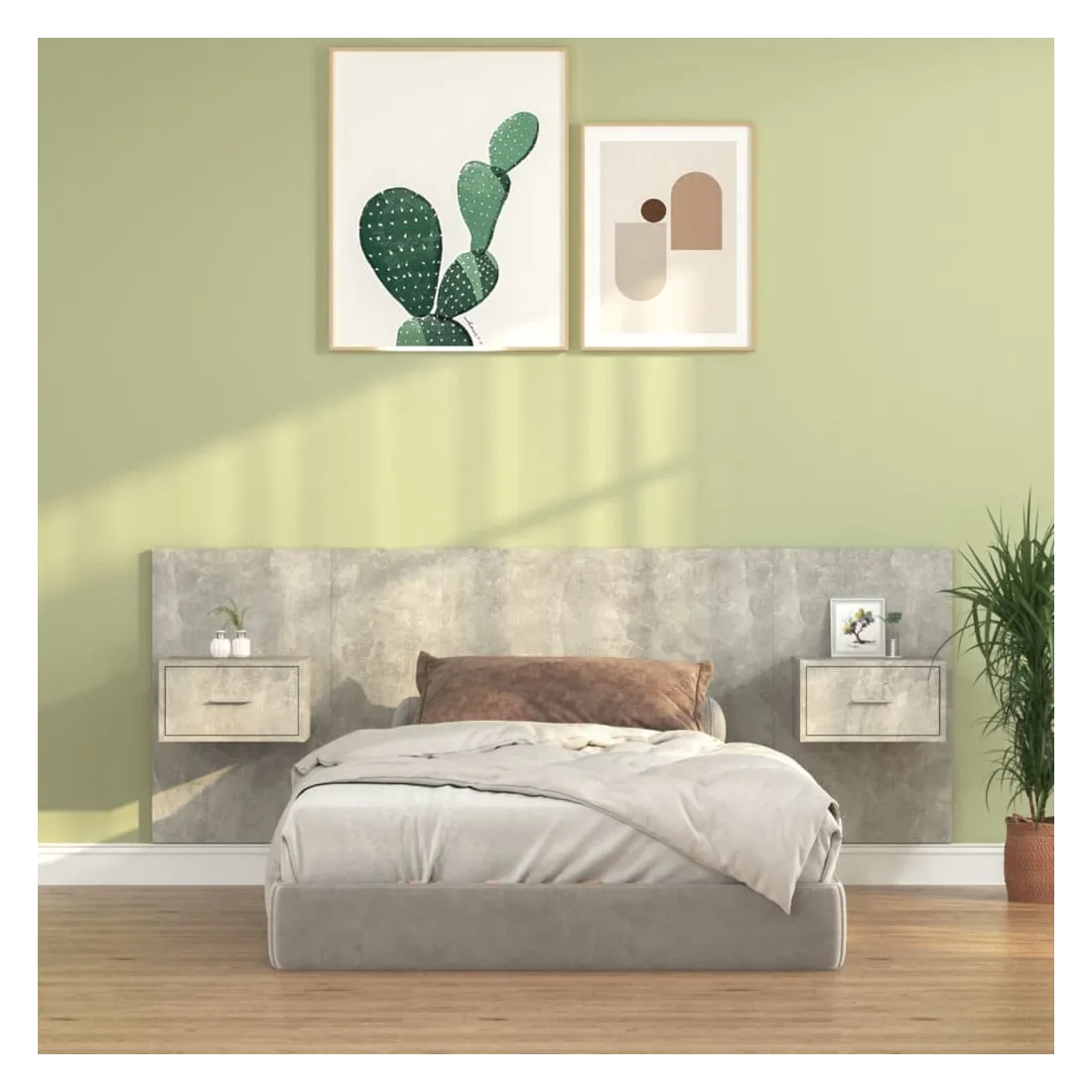 La tête de lit robuste avec armoires, au design classique, donne à votre cadre de lit un aspect complet et convient à toute chambre à coucher. Matériau robuste : le bois d'ingénierie est d'une qualité exceptionnelle avec une surface lisse et présente également résistance, stabilité et résistance à l'humidité.Design mural : les tables de chevet flottantes et la tête de lit peuvent être fixées au mur. De cette façon, vous pouvez maximiser votre espace au sol et garder la zone propre.Espace de rangement : l'unité de chevet dispose d'un espace de rangement spacieux qui vous permet de garder vos affaires organisées. ATTENTION :Les vis et les chevilles pour l'intérieur du mur ne sont pas incluses. Recherchez et utilisez des vis et des chevilles adaptées à vos murs. Si vous n'êtes pas sûr, demandez conseil à un professionnel. Lisez et suivez attentivement chaque étape des instructions.