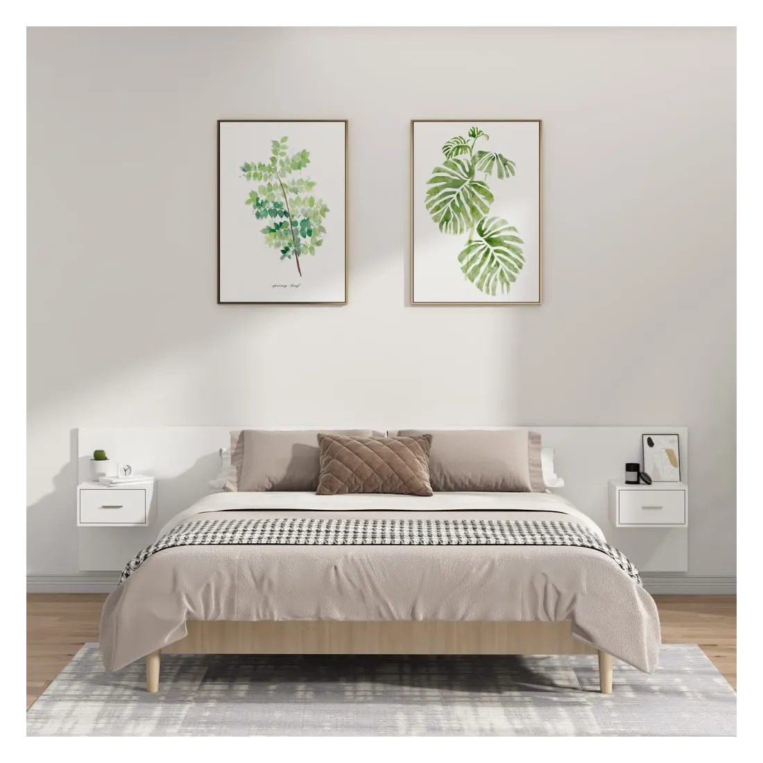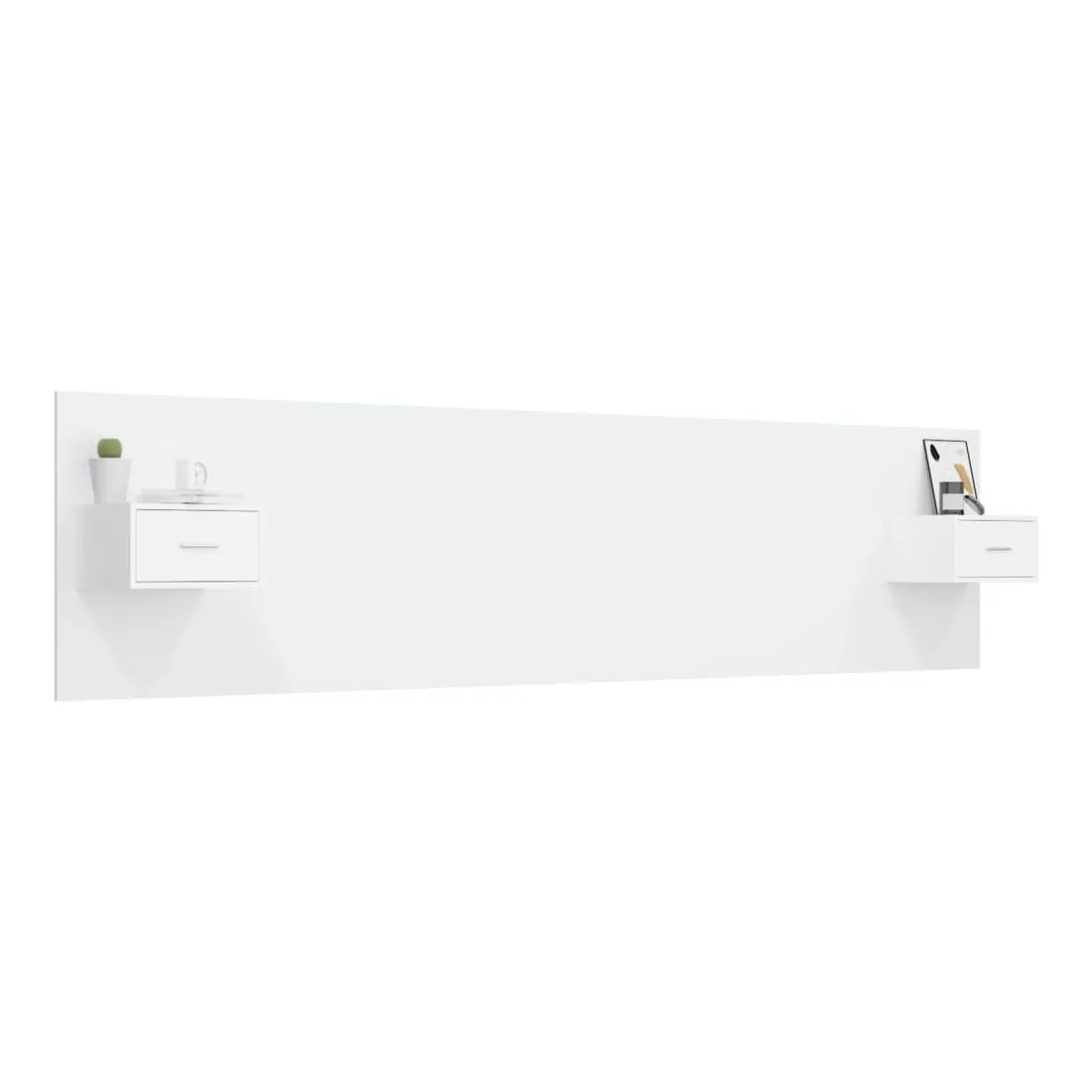 La tête de lit robuste avec armoires, au design classique, donne à votre cadre de lit un aspect complet et convient à toute chambre à coucher. Matériau robuste : le bois d'ingénierie est d'une qualité exceptionnelle avec une surface lisse et présente également résistance, stabilité et résistance à l'humidité.Design mural : les tables de chevet flottantes et la tête de lit peuvent être fixées au mur. De cette façon, vous pouvez maximiser votre espace au sol et garder la zone propre.Espace de rangement : l'unité de chevet dispose d'un espace de rangement spacieux qui vous permet de garder vos affaires organisées. ATTENTION :Les vis et les chevilles pour l'intérieur du mur ne sont pas incluses. Recherchez et utilisez des vis et des chevilles adaptées à vos murs. Si vous n'êtes pas sûr, demandez conseil à un professionnel. Lisez et suivez attentivement chaque étape des instructions.