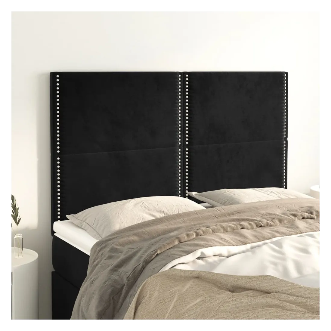 Cette tête de lit classique au design élégant complète parfaitement votre cadre de lit et s'adapte à toutes les chambres. Velours doux : Le velours est un tissu doux et luxueux qui se distingue par ses fibres denses et régulières. Il offre un toucher doux et agréable.Pieds robustes et stables : Les pieds en bois garantissent robustesse et stabilité.Hauteur réglable : La tête de lit est réglable en hauteur selon vos préférences.Excellent soutien : La tête de lit offre un excellent soutien dorsal lorsque vous êtes assis dans votre lit pour lire ou regarder la télévision.Design élégant : Les rivets sur les bords rehaussent la beauté classique de cette tête de lit rembourrée. Remarque :La livraison comprend uniquement la tête de lit. Le cadre de lit et le matelas ne sont pas inclus. Vous pouvez consulter notre boutique pour les cadres et matelas assortis.Chaque produit est livré avec un manuel de montage dans la boîte pour un assemblage facile.
