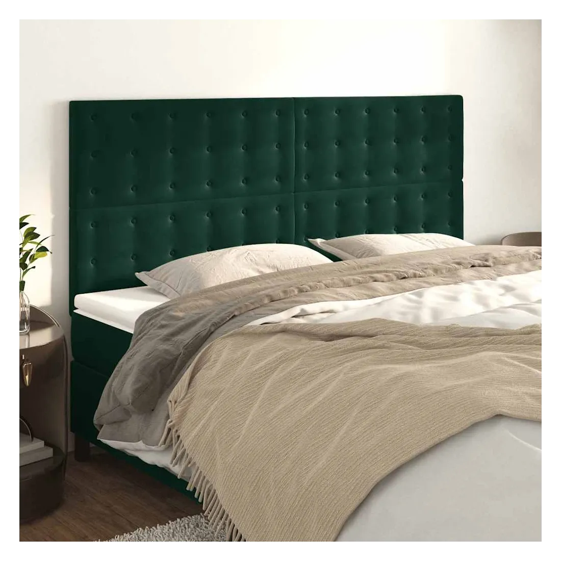 Cette tête de lit classique au design élégant complète parfaitement votre cadre de lit et s'adapte à toutes les chambres. Velours doux : Le velours est un tissu doux et luxueux qui se distingue par ses fibres denses et uniformément coupées et lisses. Le velours offre un toucher doux et agréable.Pieds robustes et stables : Les pieds en bois assurent robustesse et stabilité.Hauteur réglable : La tête de lit est réglable en hauteur selon vos préférences.Excellent soutien : La tête de lit vous offre un excellent soutien dorsal lorsque vous êtes assis dans votre lit pour lire ou regarder la télévision. Remarque :La livraison comprend uniquement la tête de lit. Le cadre de lit et le matelas ne sont pas inclus. Vous pouvez consulter notre boutique pour les cadres et matelas assortis.Chaque produit est livré avec un manuel de montage dans la boîte pour un assemblage facile.