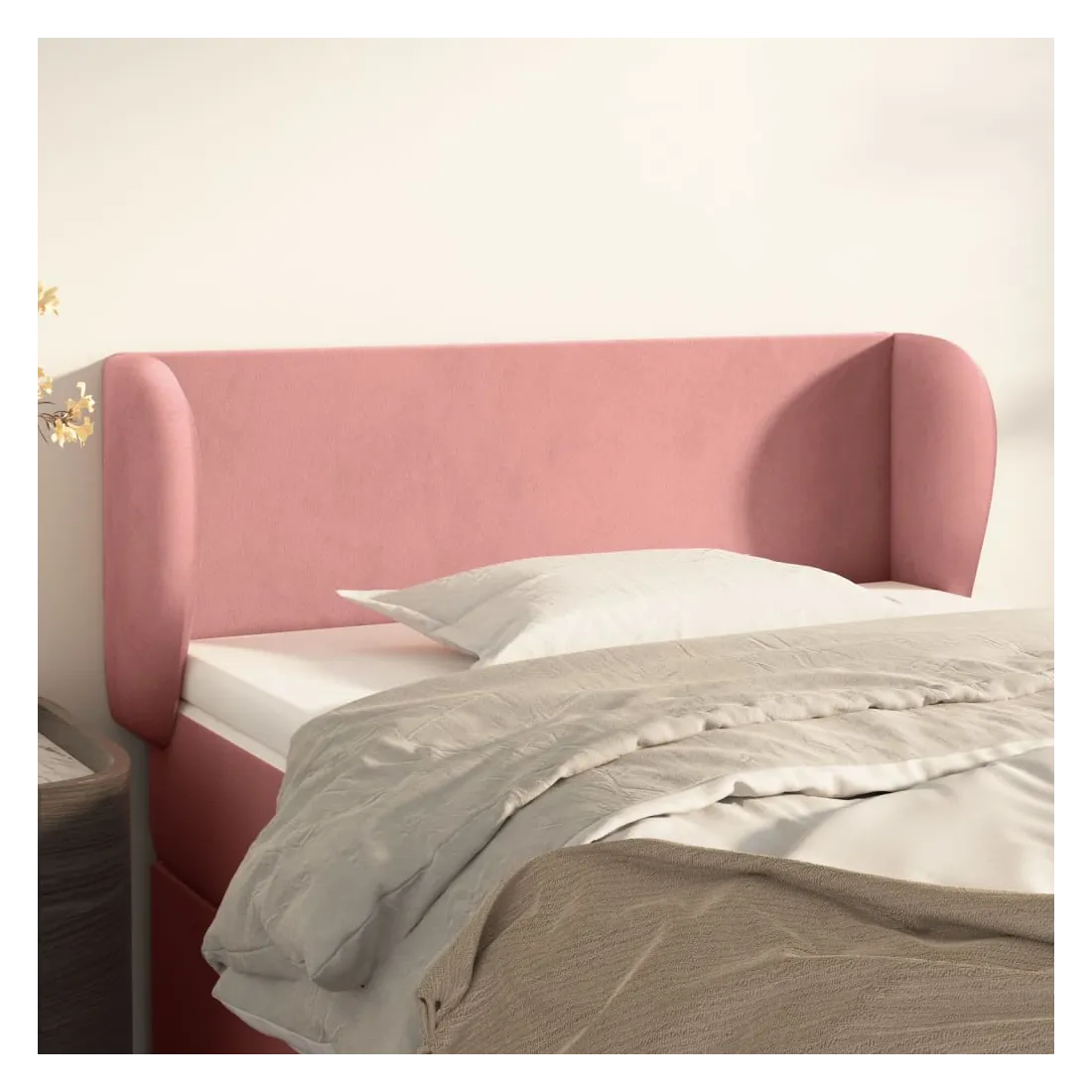 Cette tête de lit avec oreilles classique au design élégant donne à votre cadre de lit un aspect complet et convient à toute chambre à coucher. Velours doux : le velours est un tissu doux et luxueux qui se reconnaît à son tas dense de fibres uniformément coupées qui ont une touche lisse. Le tissu en velours présente un toucher doux distinctif, ce qui le rend confortable au toucher.Pieds robustes et stables : les pieds en bois assurent la robustesse et la stabilité.Hauteur réglable : la tête de lit est réglable en hauteur selon vos préférences.Excellent soutien : la tête de lit vous offre un excellent soutien du dos lorsque vous êtes assis dans votre lit pour lire ou regarder la télévision. Remarque :La livraison comprend uniquement la tête de lit. Le cadre de lit et le matelas ne sont pas inclus. Vous pouvez consulter notre boutique pour les cadres et matelas assortis.Chaque produit est livré avec un manuel de montage dans la boîte pour un montage facile.