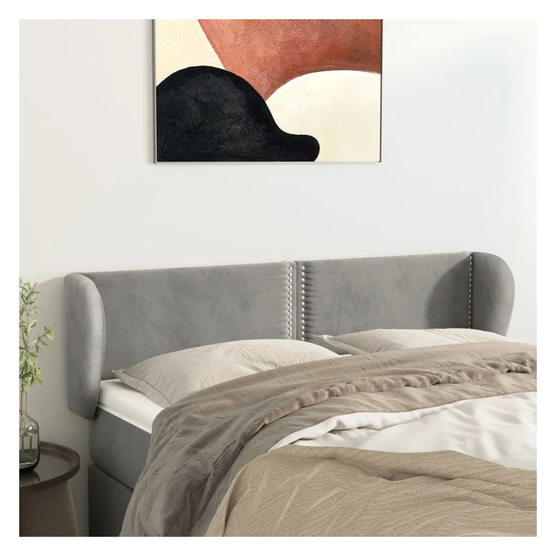 Cette tête de lit avec oreilles classique au design élégant donne à votre cadre de lit un aspect complet et convient à toute chambre à coucher. Velours doux : le velours est un tissu doux et luxueux qui se reconnaît à son tas dense de fibres uniformément coupées qui ont une touche lisse. Le tissu en velours présente un toucher doux distinctif, ce qui le rend confortable au toucher.Pieds robustes et stables : les pieds en bois assurent la robustesse et la stabilité.Hauteur réglable : la tête de lit est réglable en hauteur selon vos préférences.Excellent soutien : la tête de lit vous offre un excellent soutien du dos lorsque vous êtes assis dans votre lit pour lire ou regarder la télévision.Design élégant : les rivets le long des bords augmentent la beauté classique de la tête de lit rembourrée. Remarque :La livraison comprend uniquement la tête de lit. Le cadre de lit et le matelas ne sont pas inclus. Vous pouvez consulter notre boutique pour les cadres et matelas assortis.Chaque produit est livré avec un manuel de montage dans la boîte pour un montage facile.