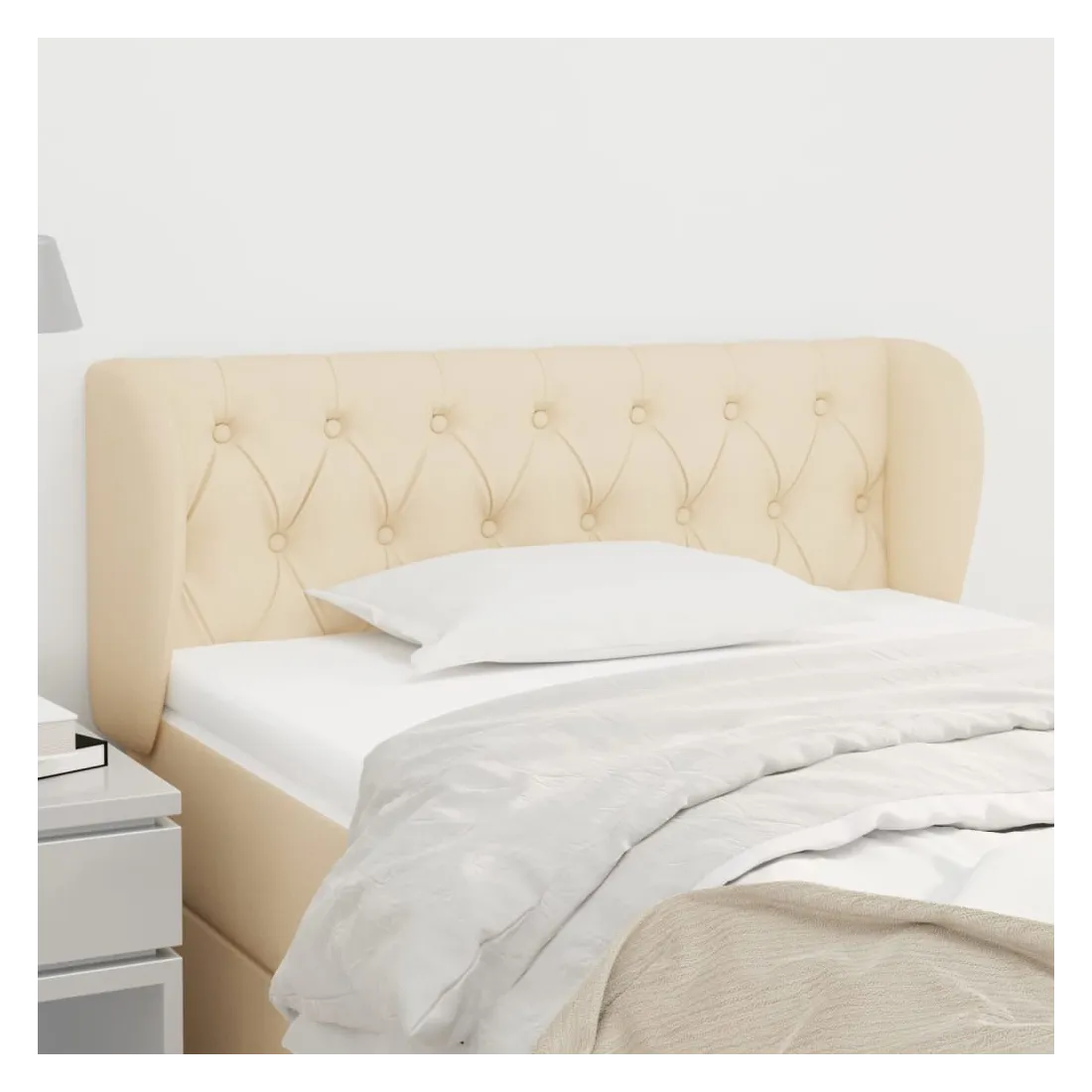 Cette tête de lit avec oreilles classique au design élégant donne à votre cadre de lit un aspect complet et convient à toute chambre à coucher. Tissu durable : le tissu présente un aspect simple et épuré, et il est respirant et durable.Pieds robustes et stables : les pieds en bois assurent la robustesse et la stabilité.Hauteur réglable : la tête de lit est réglable en hauteur selon vos préférences.Excellent soutien : la tête de lit vous offre un excellent soutien du dos lorsque vous êtes assis dans votre lit pour lire ou regarder la télévision. Remarque :La livraison comprend uniquement la tête de lit. Le cadre de lit et le matelas ne sont pas inclus. Vous pouvez consulter notre boutique pour les cadres et matelas assortis.Chaque produit est livré avec un manuel de montage dans la boîte pour un montage facile.