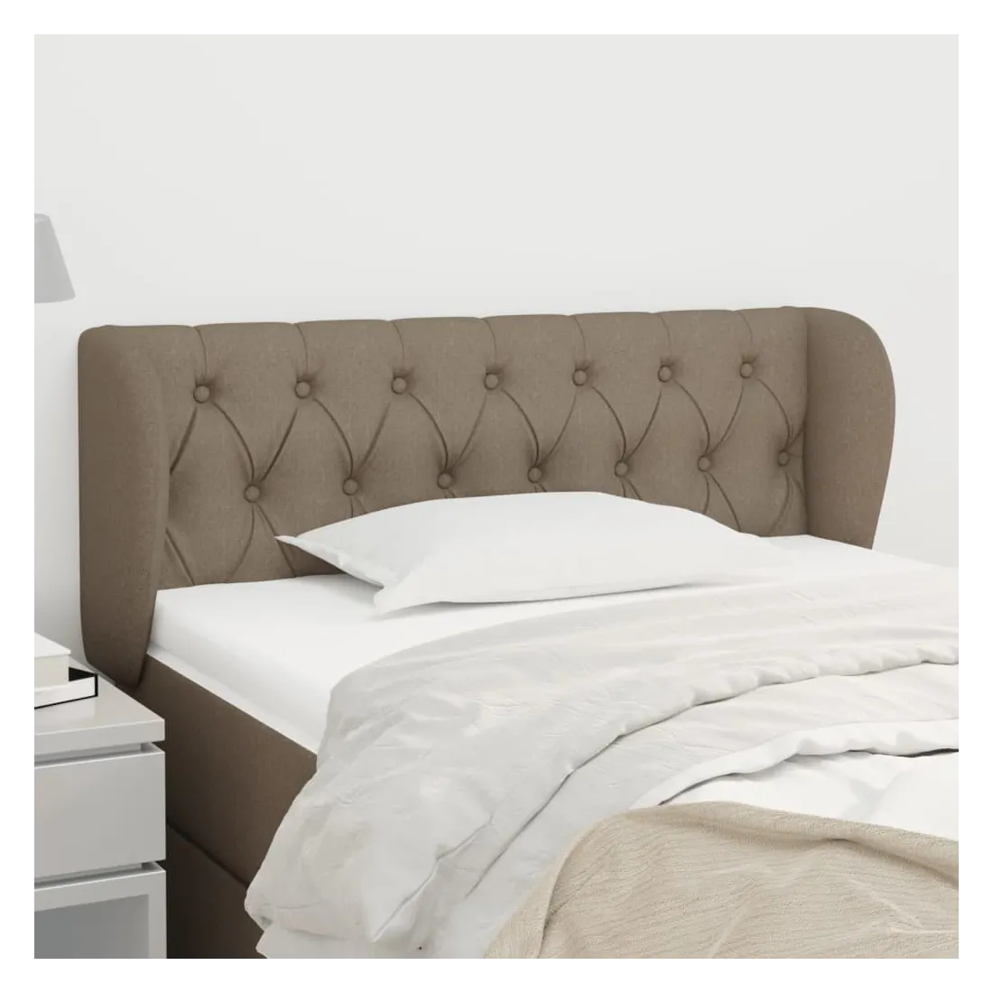Cette tête de lit avec oreilles classique au design élégant donne à votre cadre de lit un aspect complet et convient à toute chambre à coucher. Tissu durable : le tissu présente un aspect simple et épuré, et il est respirant et durable.Pieds robustes et stables : les pieds en bois assurent la robustesse et la stabilité.Hauteur réglable : la tête de lit est réglable en hauteur selon vos préférences.Excellent soutien : la tête de lit vous offre un excellent soutien du dos lorsque vous êtes assis dans votre lit pour lire ou regarder la télévision. Remarque :La livraison comprend uniquement la tête de lit. Le cadre de lit et le matelas ne sont pas inclus. Vous pouvez consulter notre boutique pour les cadres et matelas assortis.Chaque produit est livré avec un manuel de montage dans la boîte pour un montage facile.