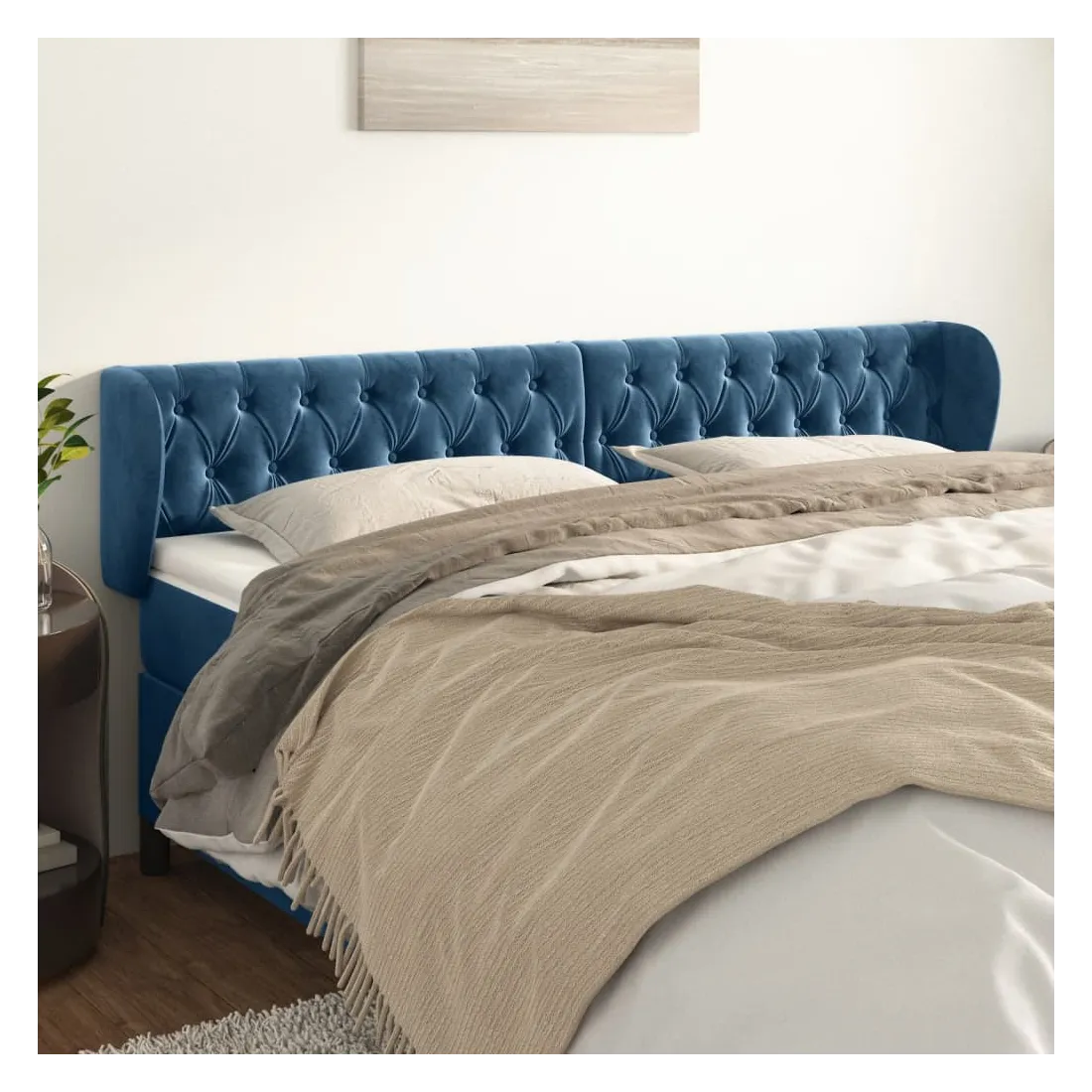 Tête de lit avec oreilles Bleu foncé 183x23x78/88 cm Velours