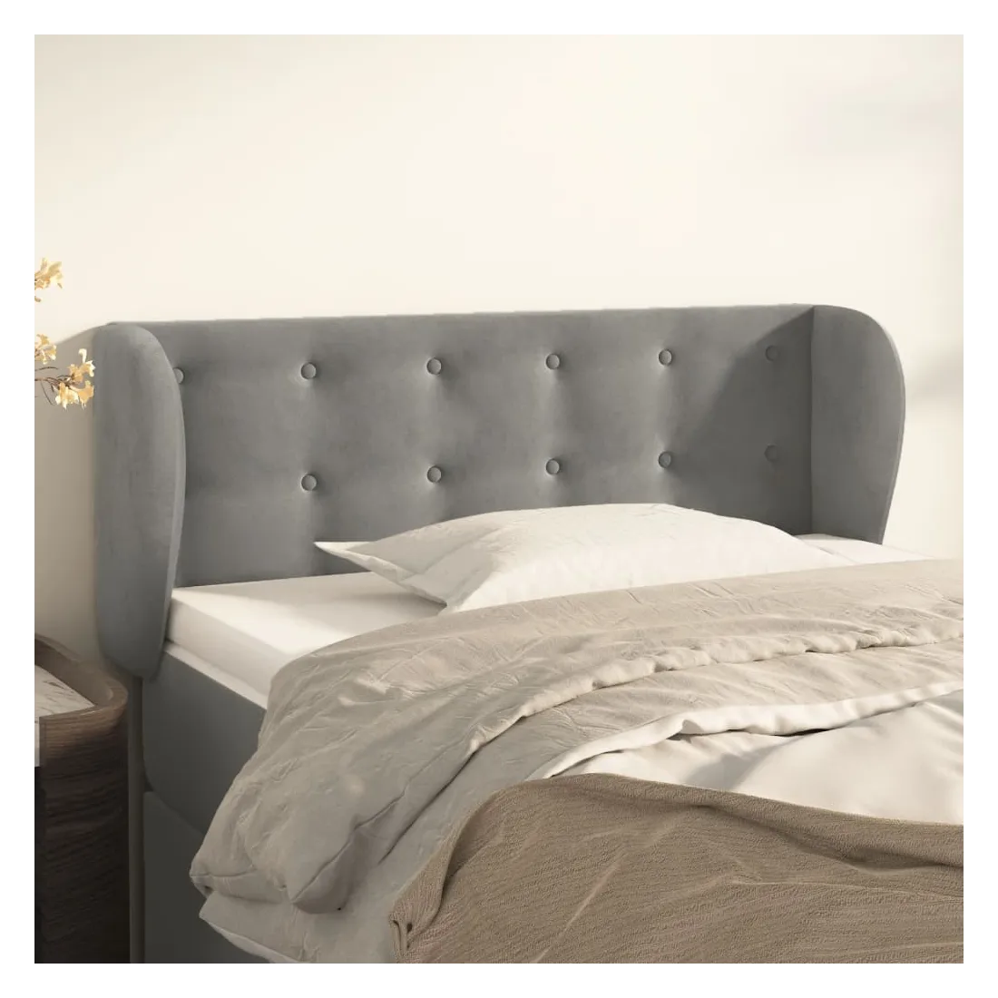 Cette tête de lit avec oreilles classique au design élégant donne à votre cadre de lit un aspect complet et convient à toute chambre à coucher. Velours doux : le velours est un tissu doux et luxueux qui se reconnaît à son tas dense de fibres uniformément coupées qui ont une touche lisse. Le tissu en velours présente un toucher doux distinctif, ce qui le rend confortable au toucher.Pieds robustes et stables : les pieds en bois assurent la robustesse et la stabilité.Hauteur réglable : la tête de lit est réglable en hauteur selon vos préférences.Excellent soutien : la tête de lit vous offre un excellent soutien du dos lorsque vous êtes assis dans votre lit pour lire ou regarder la télévision. Remarque :La livraison comprend uniquement la tête de lit. Le cadre de lit et le matelas ne sont pas inclus. Vous pouvez consulter notre boutique pour les cadres et matelas assortis.Chaque produit est livré avec un manuel de montage dans la boîte pour un montage facile.