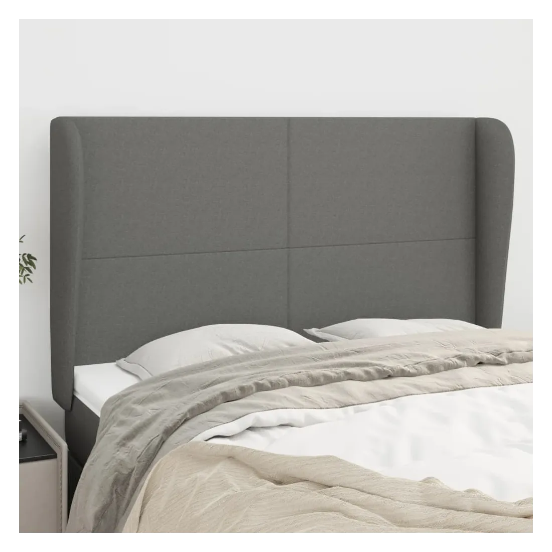 Tête de lit avec oreilles Gris foncé 147x23x118/128 cm Tissu