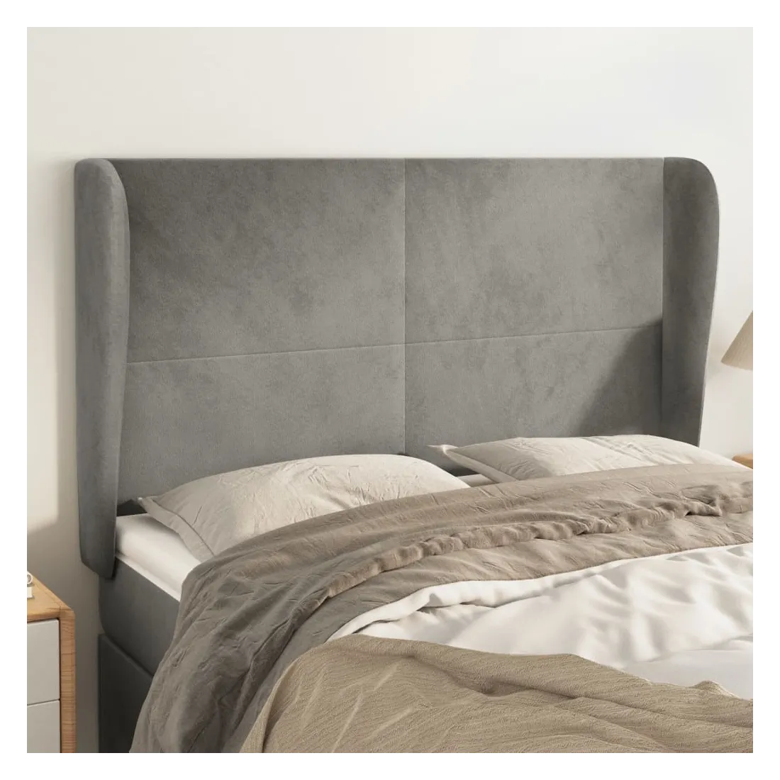 Cette tête de lit avec oreilles classique au design élégant donne à votre cadre de lit un aspect complet et convient à toute chambre à coucher. Velours doux : le velours est un tissu doux et luxueux qui se reconnaît à son tas dense de fibres uniformément coupées qui ont une touche lisse. Le tissu en velours présente un toucher doux distinctif, ce qui le rend confortable au toucher.Des pieds robustes et stables : les pieds en bois assurent la robustesse et la stabilité.Hauteur réglable : la tête de lit est réglable en hauteur selon vos préférences.Excellent soutien : la tête de lit vous offre un excellent soutien du dos lorsque vous êtes assis dans votre lit pour lire ou regarder la télévision. Remarque :La livraison comprend uniquement la tête de lit. Le cadre de lit et le matelas ne sont pas inclus. Vous pouvez consulter notre boutique pour les cadres et matelas assortis.Chaque produit est livré avec un manuel de montage dans la boîte pour un montage facile.