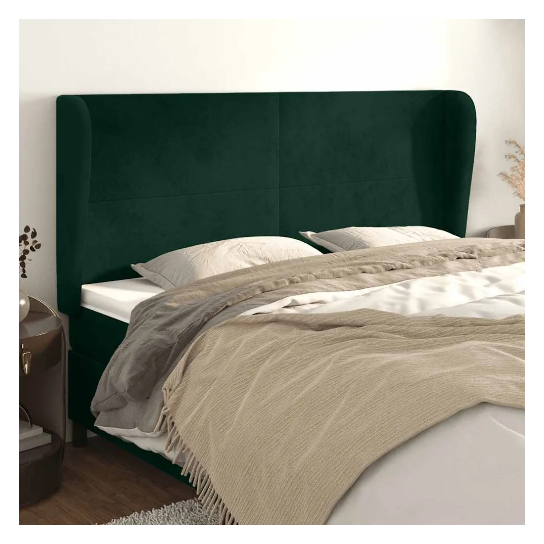 Tête de lit avec oreilles Vert foncé 203x23x118/128 cm Velours